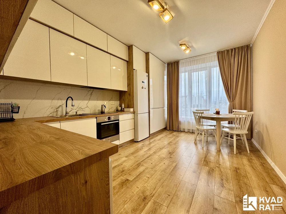 Перша здача. Пропонується в оренду сучасна квартира в новобудові біля м. Житомирська (Берестейський пр-т, 131а). В будинку є генератор (завжди є опалення, вода та працює ліфт). Квартира укомплектована всіма необхідними меблями та технікою. У кімнаті - двоспальне ліжко, розкладний диван, письмовий стіл, кондиціонер, телевізор, велика шафа для одягу. Санвузол суміщений, душова кабінка. Тихий двір, велика парковка. До метро Житомирська - 10 хвилин пішки. Вартість 16000 грн. Умови оренди: оплата за два місяці та послуги рієлтора (50%). комісія: 50%