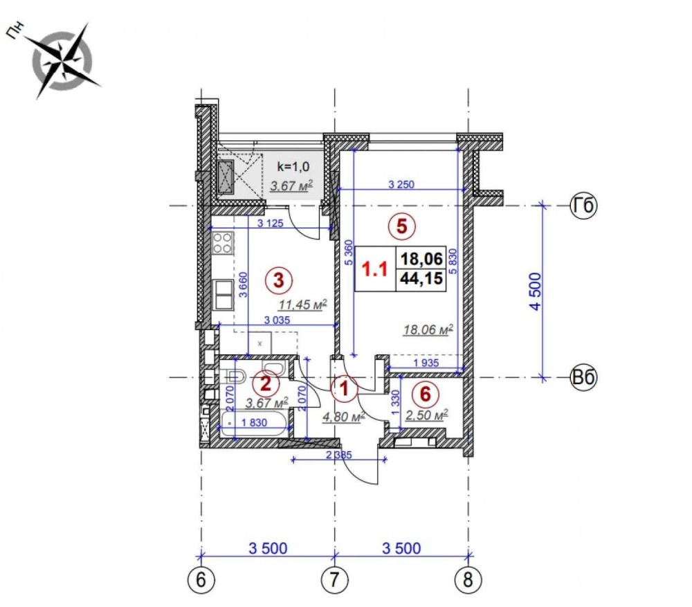 Планировка: Прихожая, совмещенный санузел с душевой кабиной, гардеробная, отдельная спальня, отдельная кухня с выходом на застекленную лоджию.