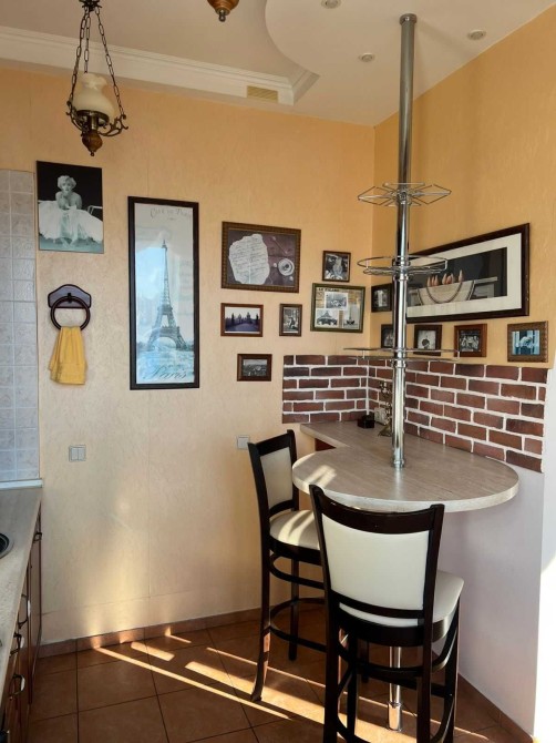 Просторий передпокій, велика ванна кімната. У вітальні зручний диван та зона відпочинку, окремо облаштоване робоче місце і інтернет. У кухні вся побутова техніка та бар у паризькому стилі.