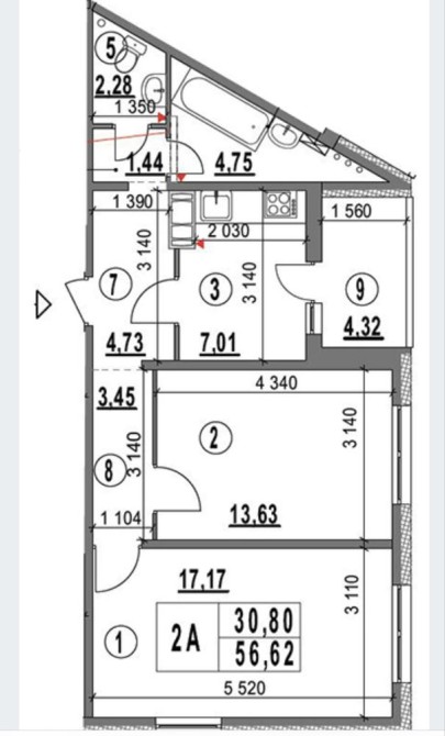 • Общая площадь 57 м2