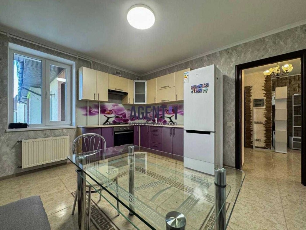 Простора кухня 15 кв.м.: встановлена вбудована кухня з технікою: газова варильна поверхня, духова шафа, холодильник, витяжка, газовий двоконтурний котел, обідній стіл зі стільцями. Великий санвузол з повноцінною акриловою ванною, умивальник з тумбою, дзеркало, сушка для рушників, пральна машина автомат. У коридорі встановлено містку шафу-купе. В квартирі встановлено інвертор , при вимкненні світла у вас він буде завжди. Заведений інтернет. Квартира повністю всередині будинку. 5/6 пов.