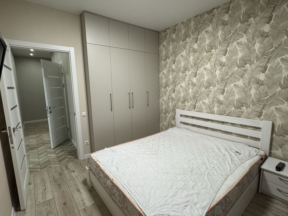 • Простора спальня повністю укомплектована: двоспальне ліжко, шафа, приліжкова тумбочка, телевізор