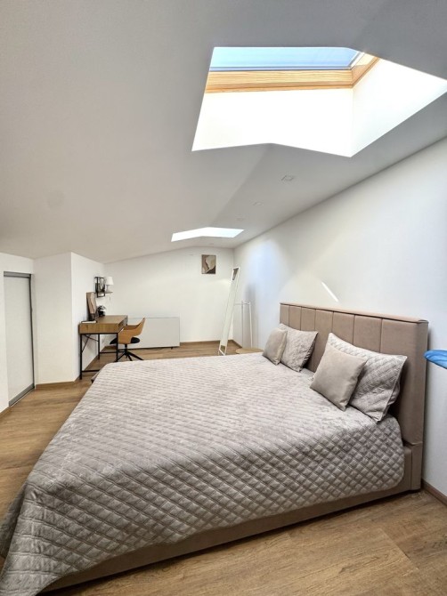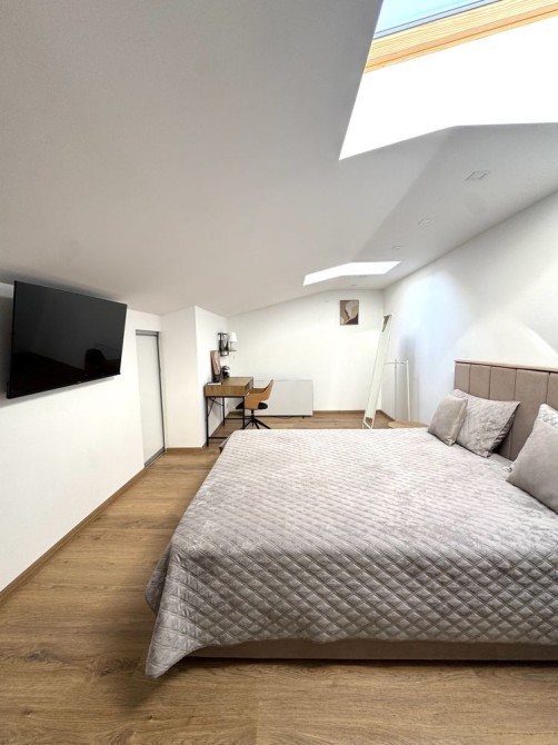 Деталі: Тиха та комфортна квартира з мансардним поверхом, розташована в одному з найкращих районів Ужгорода — Боздош. На першому поверсі ванна кімната, кухня окремо, вітальня з розкладним диваном, гардеробна. Другий поверх спальна кімната.