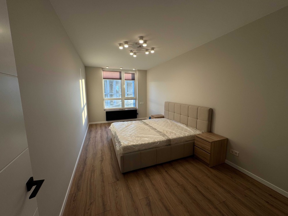 Простора ізольована спальна з великим двоспальним ліжком, та приліжковими тумбами мають доставити ще дві шафи