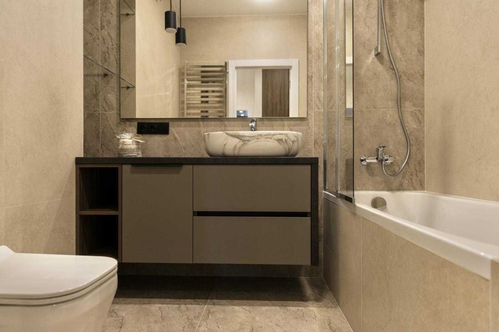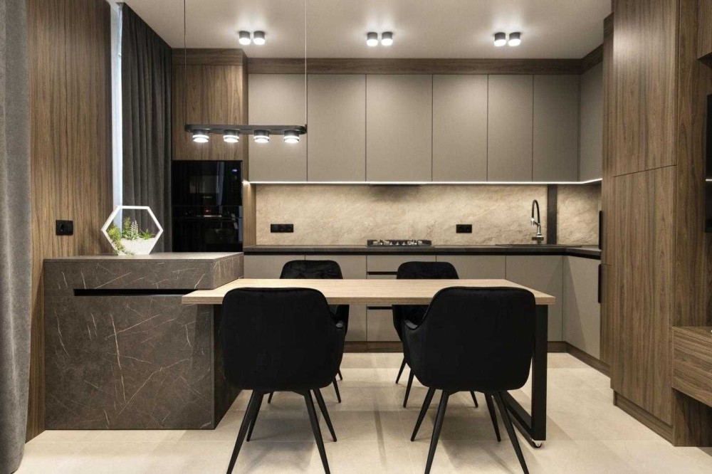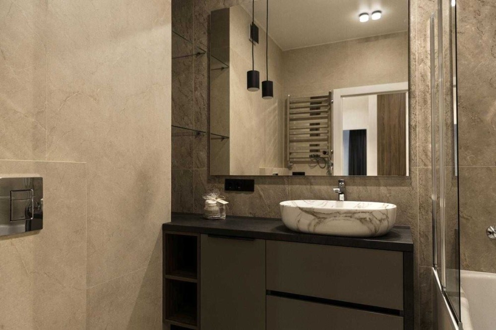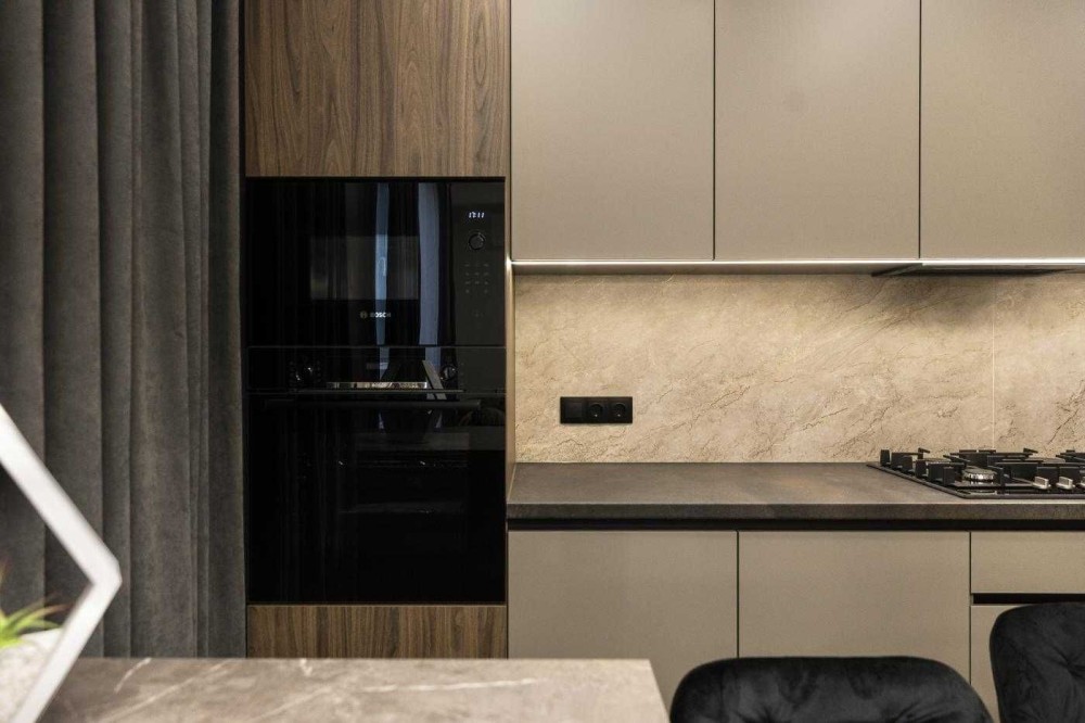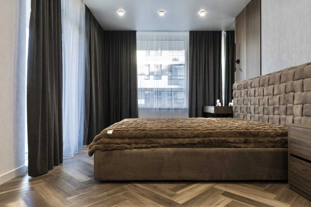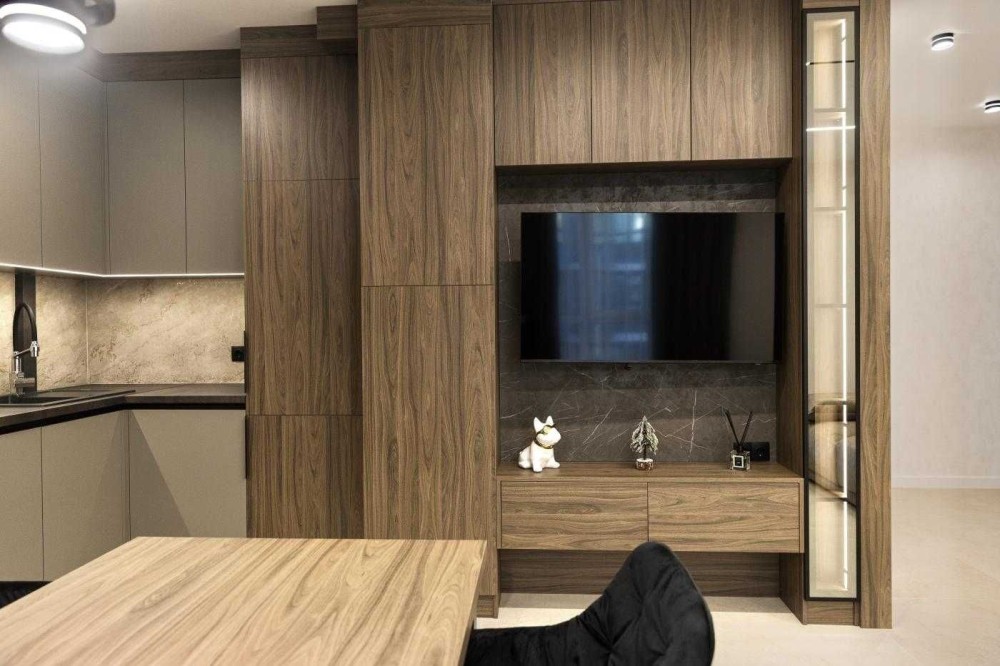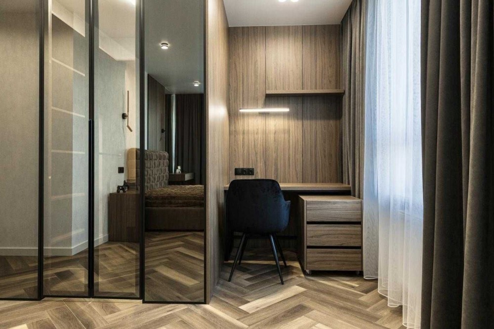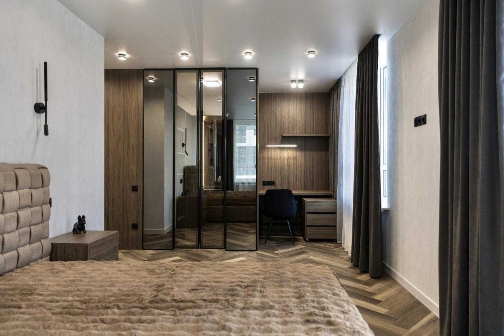 • Ремонт виконаний за індивідуальним дизайн-проєктом у сучасному стилі.