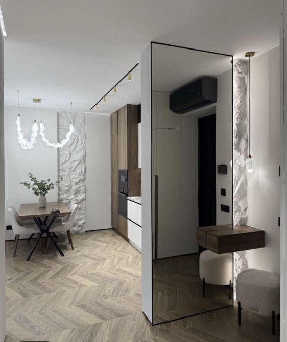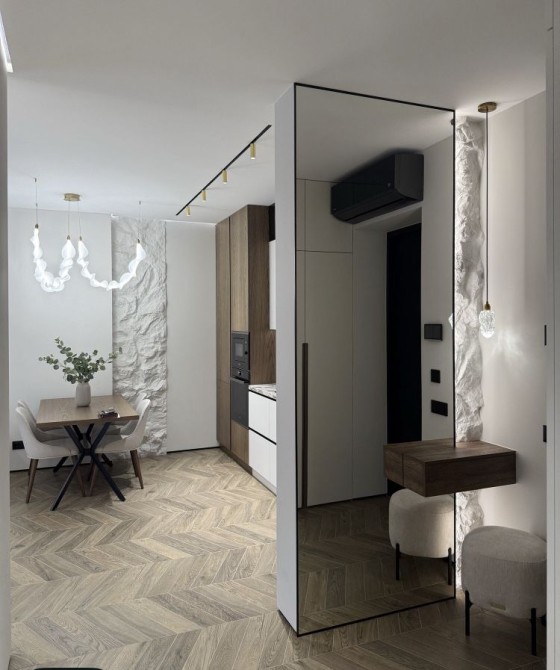 2 спальні, кухня студія з диваном , гардеробна , великий балкон.
