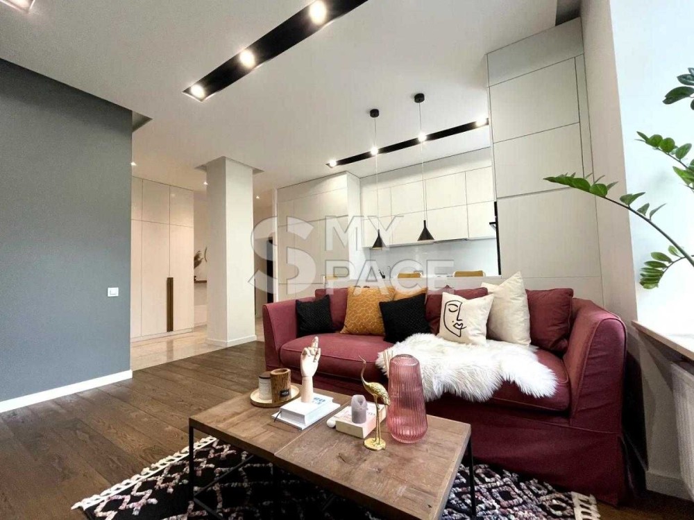 Здається простора дизайнерська 2-кімнатна квартира 56м² на 2-му поверсі 5-поверхового будинку, 5 хв пішки від метро Золоті Ворота.