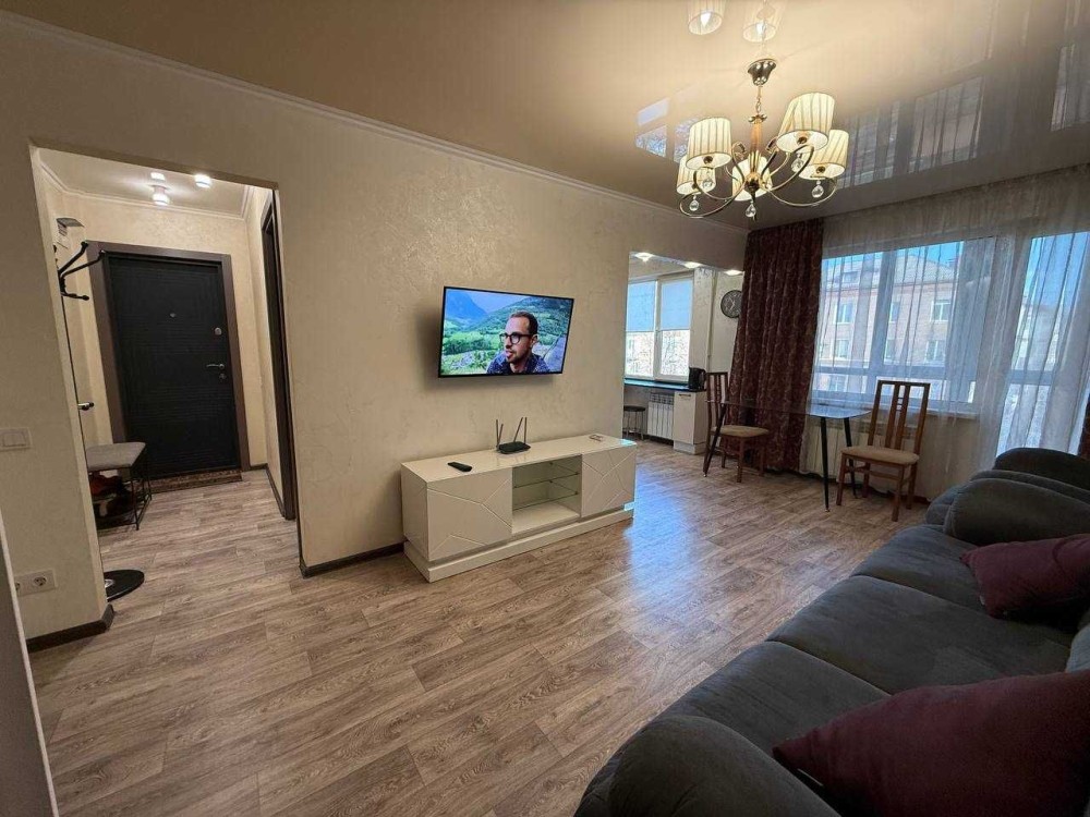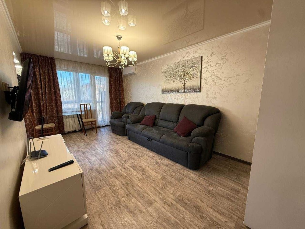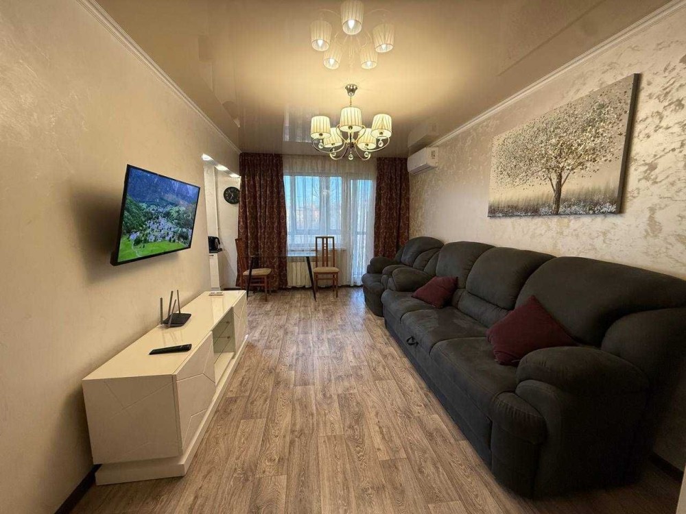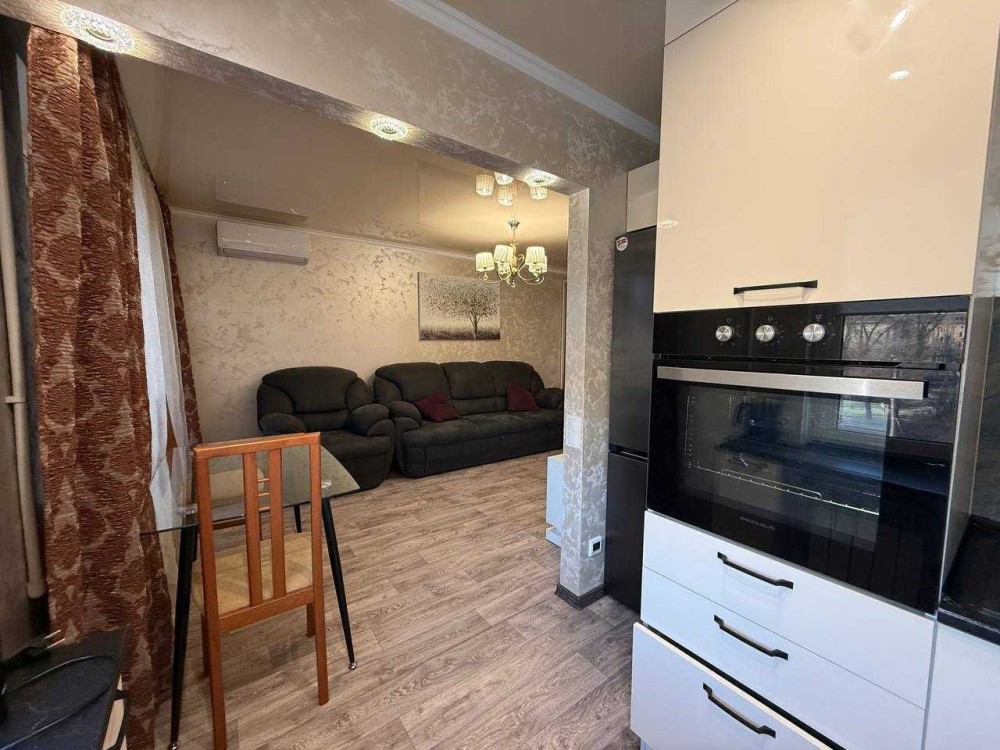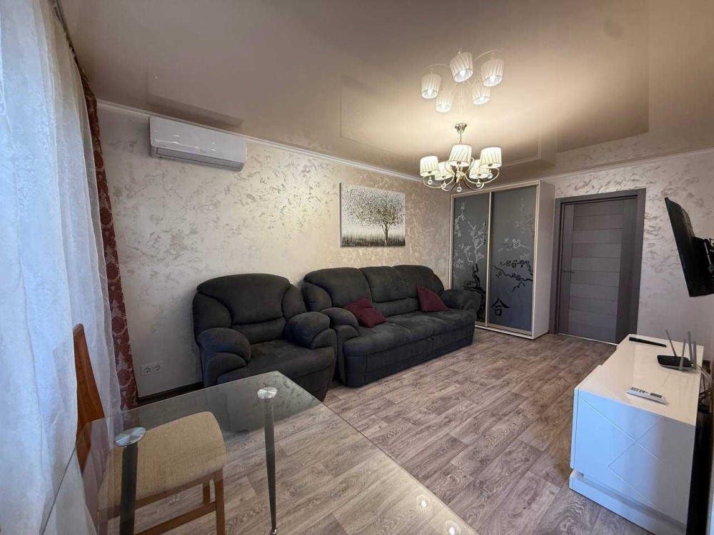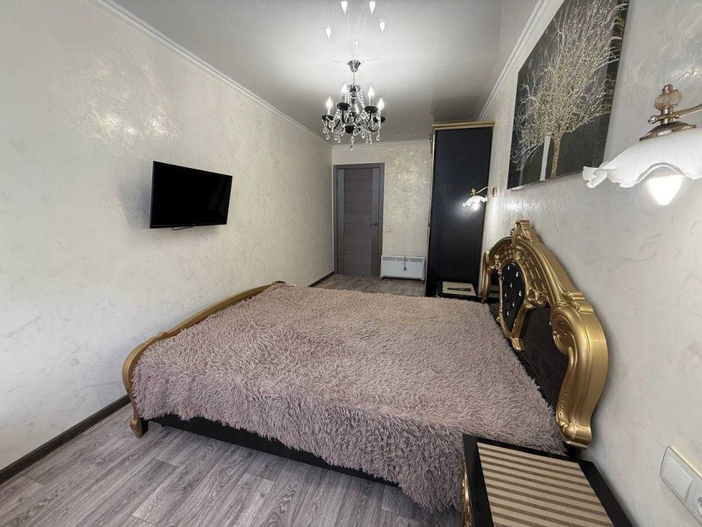 Квартира з євро ремонтом, укомплектована всіма меблями та технікою: газ. колонка, холодильник, ел.чайник, газова варильна панель, ел. духовка, витяжка, мікрохвильова піч, пральна машина, ел. сушарка для рушників, 2 телевізори, кондиціонер.