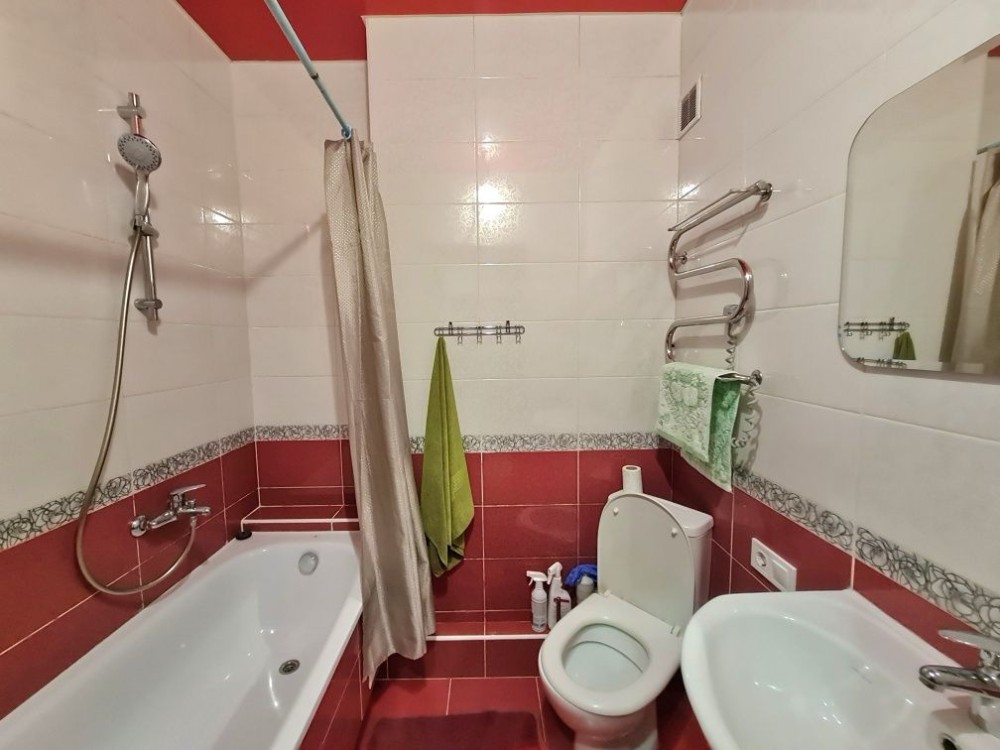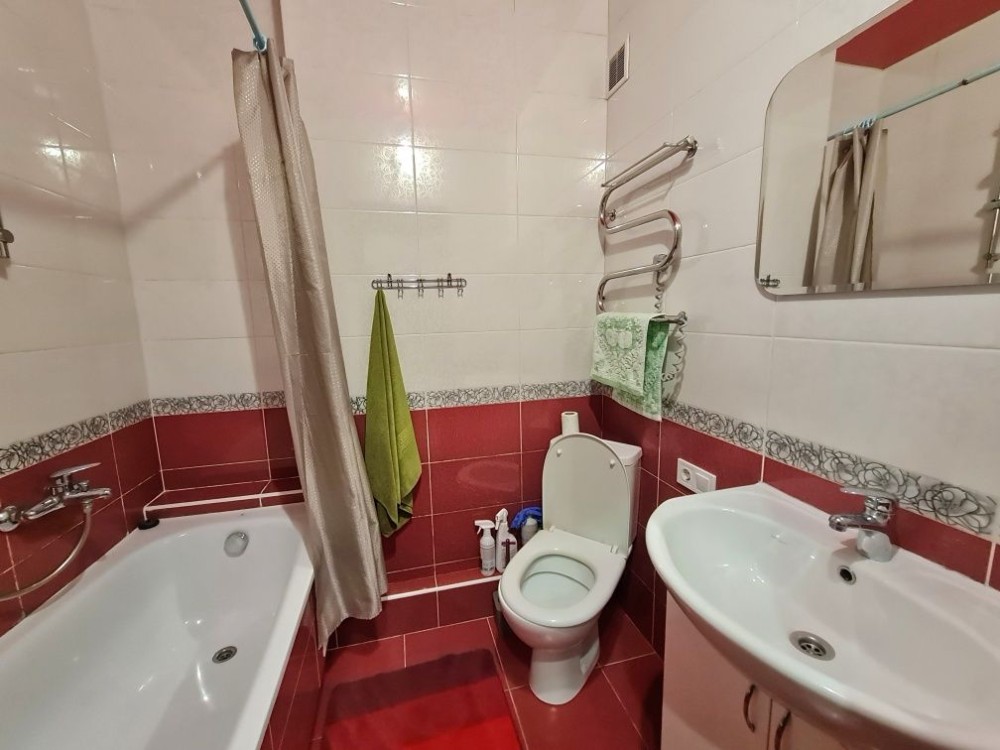 Повністю укомплектована меблями та технікою - 2х спальне ліжко, розкладний диван,2 шафи-купе, 2 комоди, тумба під телевізор, обідня група, стіл, розкладне крісло, пральна машина, холодильник, газова вар.поверхня, духовка, витяжка, телевізор, бойлер, пилосос.