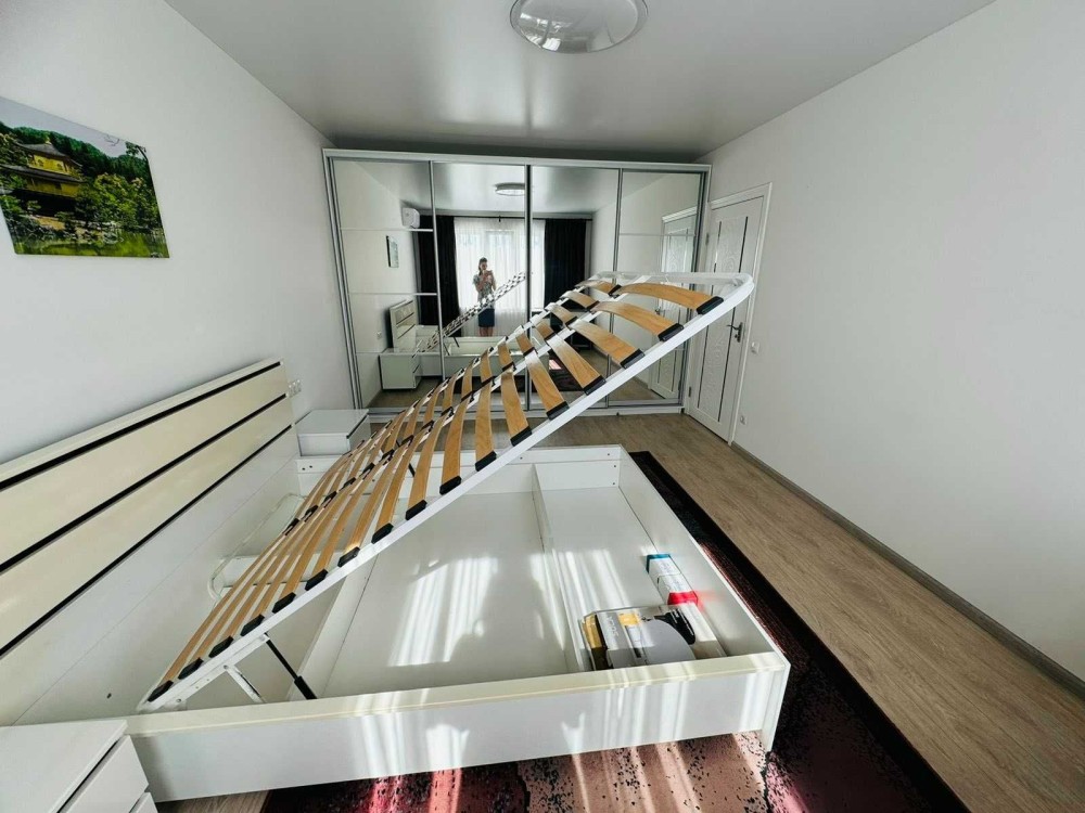 Загальна площа квартири 60 м кв, житлова 36,1 м кв, кухня 8,5 м кв. Є велика лоджія, санвузол роздільний. В квартирі є все для зручного комфортного проживання : три великі вбудовані шафи, двоспальне ліжко, диван, вбудована кухня з технікою, стіл. Є бойлер, пральна машина. Стан квартири ідеальний - майже не користувались. На тепло, воду, електроенергію є лічильники. Холодильник і матрас для ліжка є (немає тільки на фото).