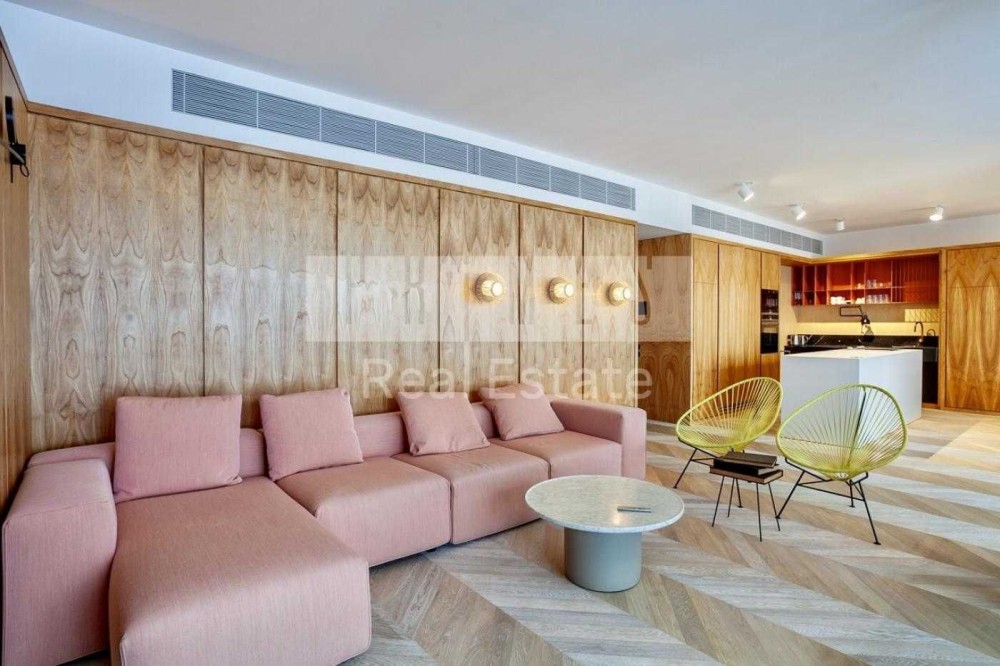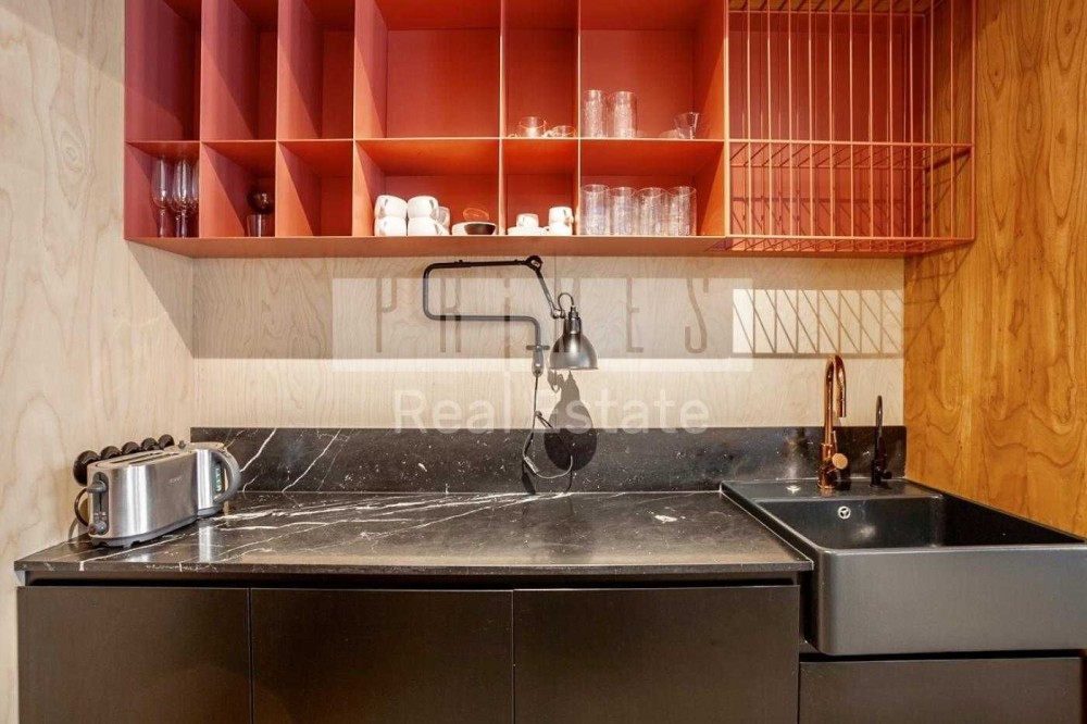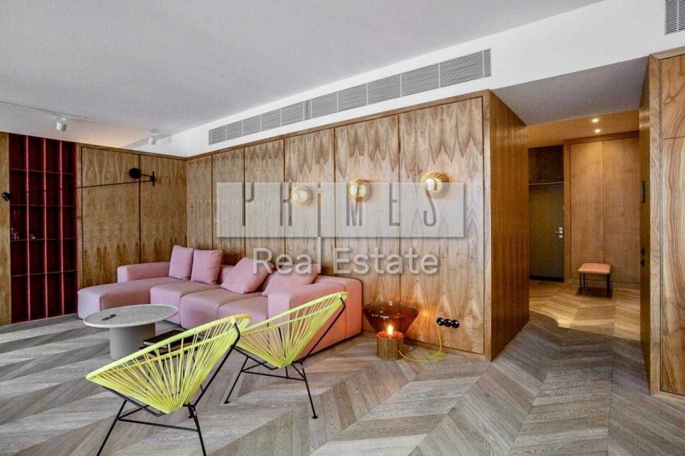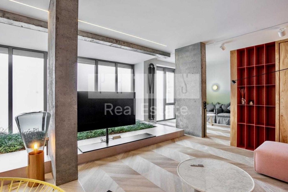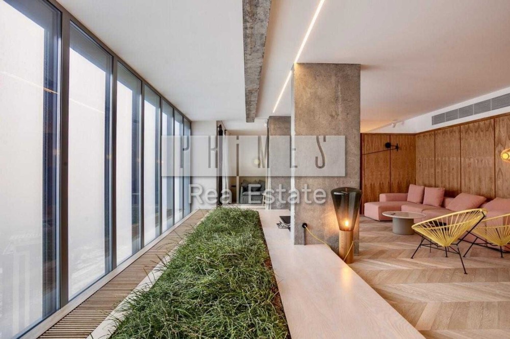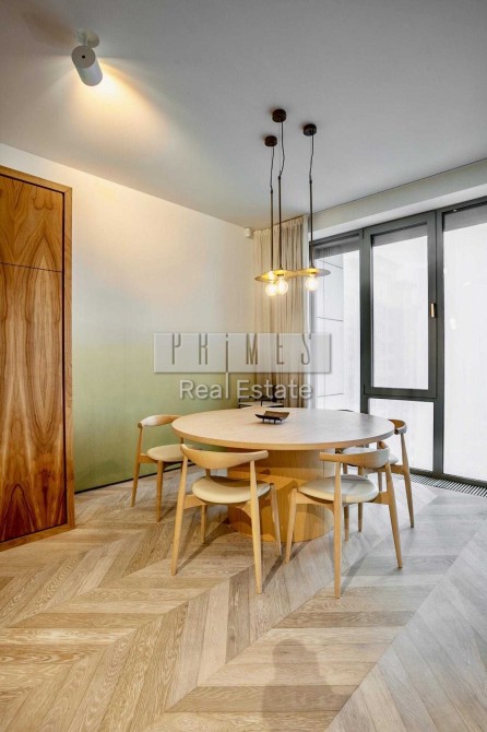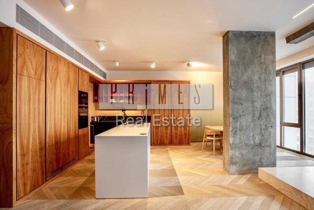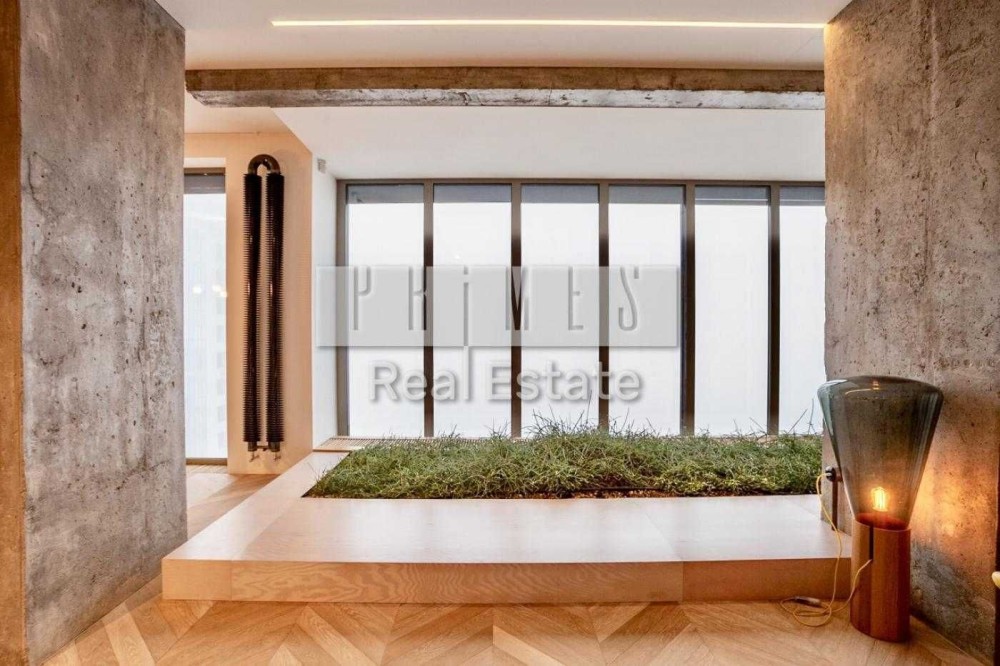 Відомий дизайнерський проект, відкрита концепція квартири простора та вражаюча, з ідеально збалансованими елементами металу, цементу та дерева, оснащена найсучаснішими технологіями, проста в управлінні система Smart House, яка може контролювати температурний режим, телебачення, функцію затемнення вікон драпіруванням із сонцезахисним ефектом. Вікна від підлоги до потолку відкривають чудові краєвиди на місто, Дніпро та небо. Великі плоскості розсувних скляних та білих непрозорих перегородок були призначені для трансформування простору вітальні та спальні.