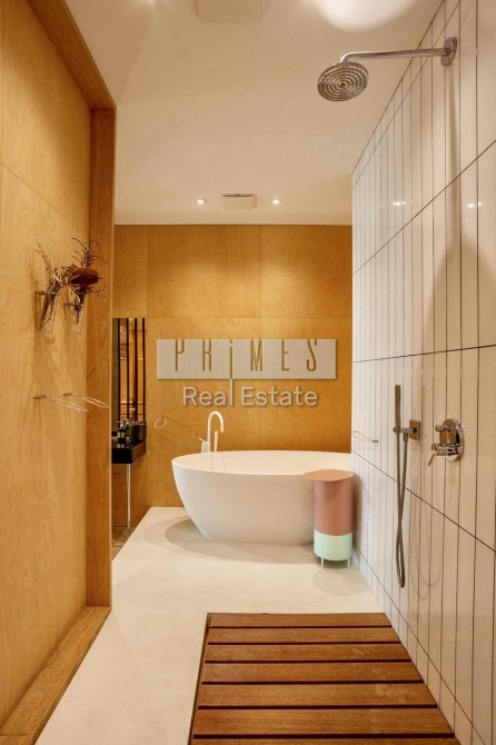 Зелена жива стіна біля ванної кімнати, полив контролюється автоматично, ванна повністю виготовлена ​​з дерева. Цей чудовий пентхауз можна зустріти на сторінках відомих журналів: Dezeen, Archdaily, Homizer, Buzyboo, Arafen, HomeDSGN та ін.