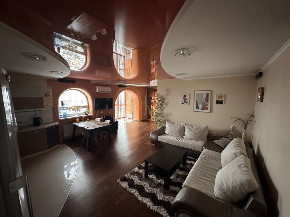 Квартира(люкс) з дизайнерським ремонтом, в дуже зручному місці, поруч зупинки транспорту(трамвай, тролейбус, автобус, маршрутне таксі), біля студії «Барвінок», закритий двір, закрита стоянка, поруч дитячий садок, 2 школи, супермаркети, торговий центр. Чудовий вид з вікна. Високошвидкісний автономний інтернет, WiFi , кабельне телебачення.