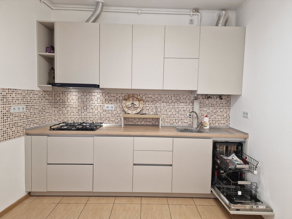 - уся необхідна побутова техніка (пральна машина, посудомийна машина; холодильник, електрична духова шафа, газова варильна поверхня, витяжка)