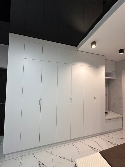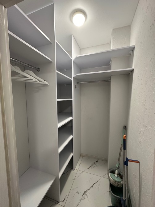У квартирі є велика шафа у вітальні, а також окрема гардеробна — багато місця для зберігання речей.