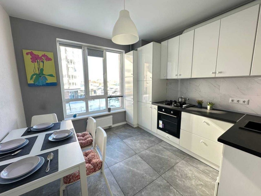 Квартира оснащена сучасними меблями та технікою.