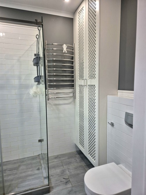Є все необхідне: електрична плита, мікрохвильова піч, чайник, холодильник, бойлер, пральна машина.