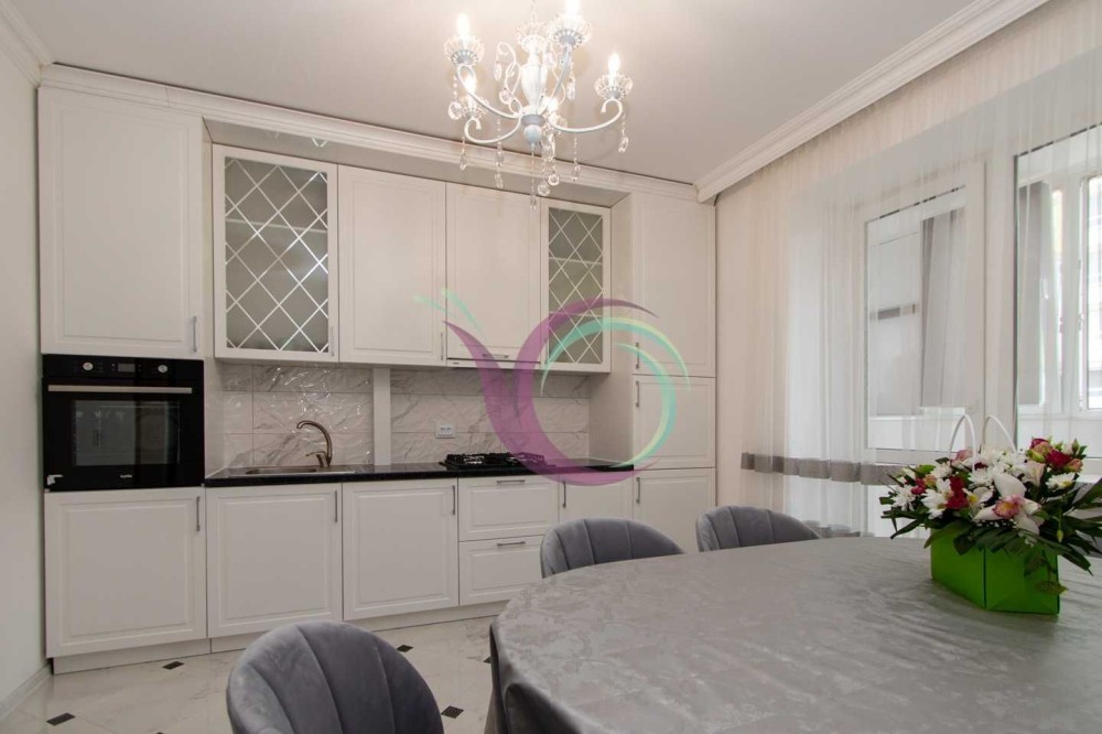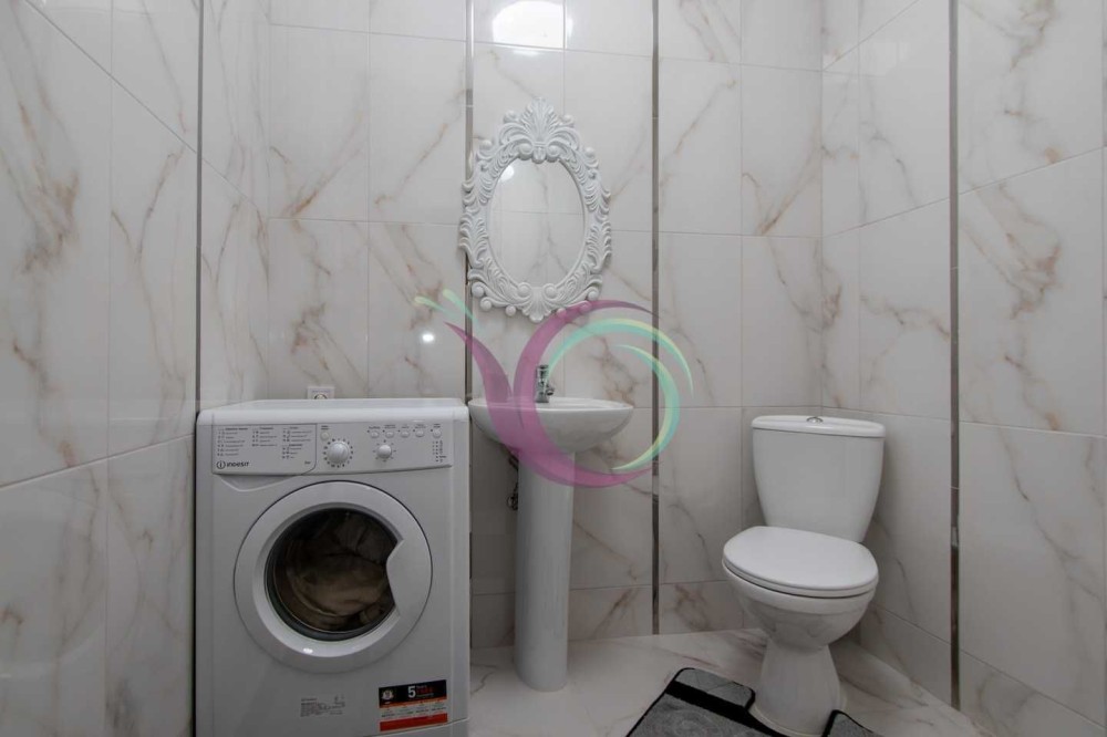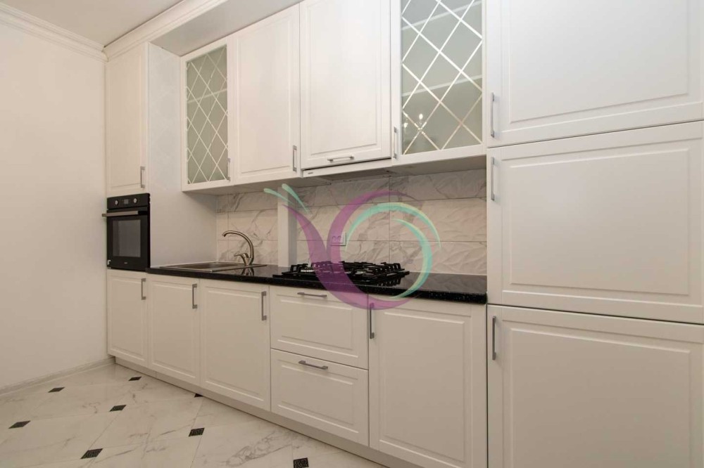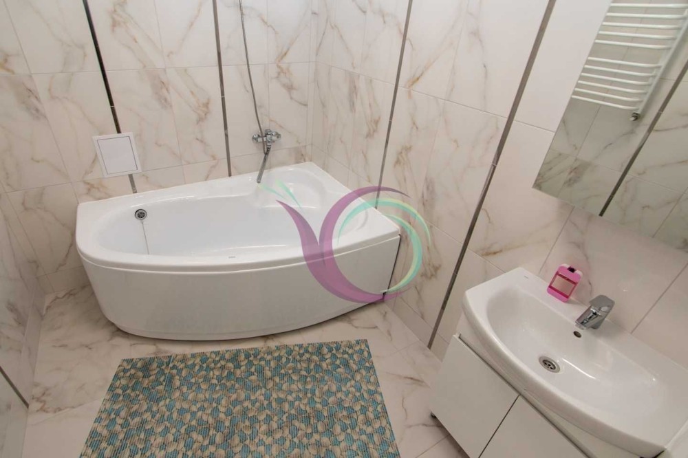 Світла кухня, виконана в білих тонах, робить її ще просторішою, а завдяки містким шафам для зберігання посуду та побутовій техніці (варильна панель, духова шафа. витяжка) процес приготування їжі приноситиме задоволення. Поряд розміщена комфортна обідня зона. Ванна кімната та санвузол роздільні, що досить зручно. Тут є функціональна сантехніка та пральна машина.