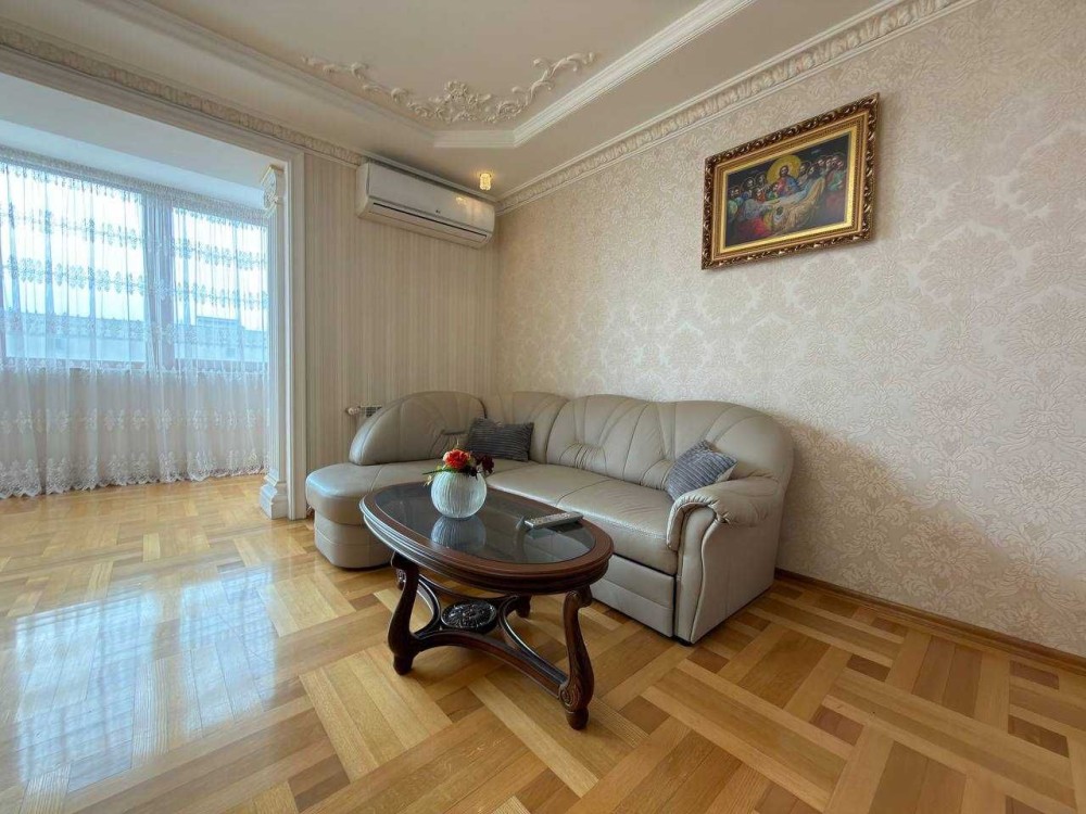 Особливу увагу привертає велика вітальня з каміном, яка створює затишну атмосферу, а також має вихід на простору лоджію. У квартирі встановлені кондиціонери та підігрів підлоги, що забезпечує комфорт у будь-яку пору року.