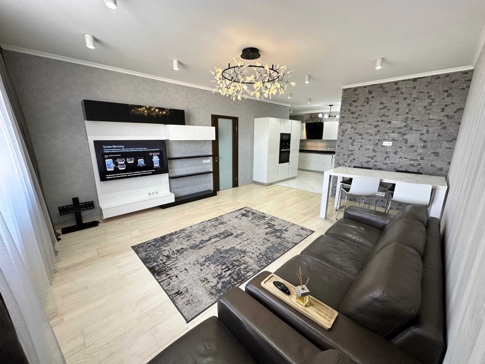 Паркетна дошка, підлога з підігрівом, італійська сантехніка. Вбудована кухня з необхідною технікою: посудомийна машина, духова шафа, варильна панель, вбудована мікрохвильова піч, холодильник, вся техніка Bosch! телевізори Samsung, кондиціонери Mitsubishi, пральна машина Bosch, бойлер, фільтр для води із системою зворотного осмосу Zepter. Велика вбиральня, шафа.