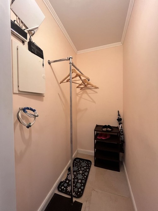 На 1 поверсі квартири гардеробна, кухня, санвузол та 2 спальні кімнати.