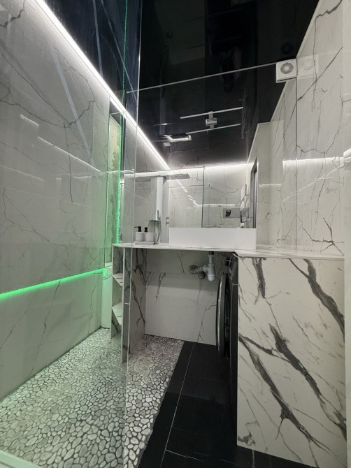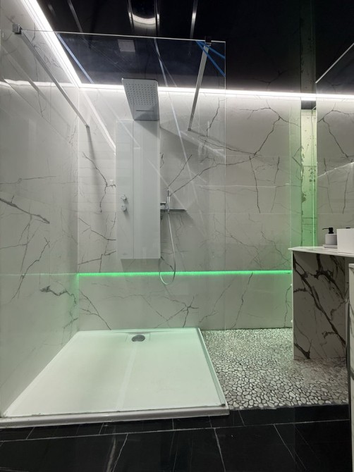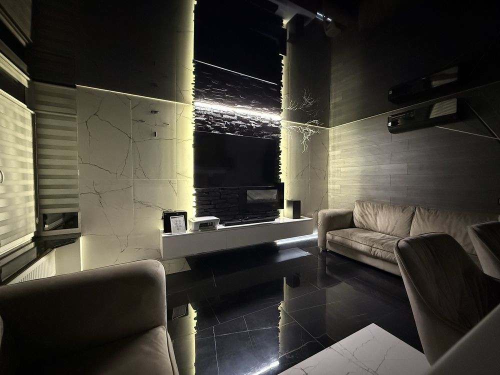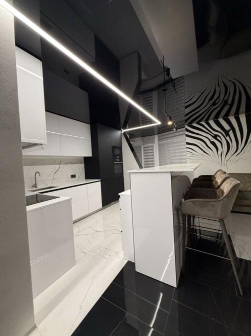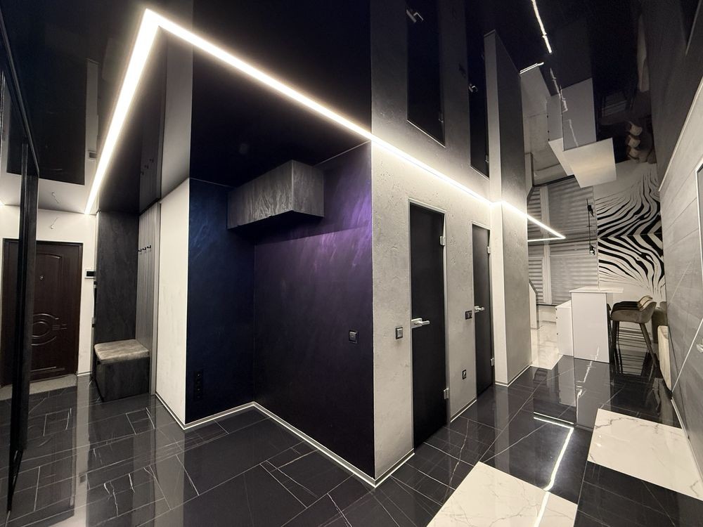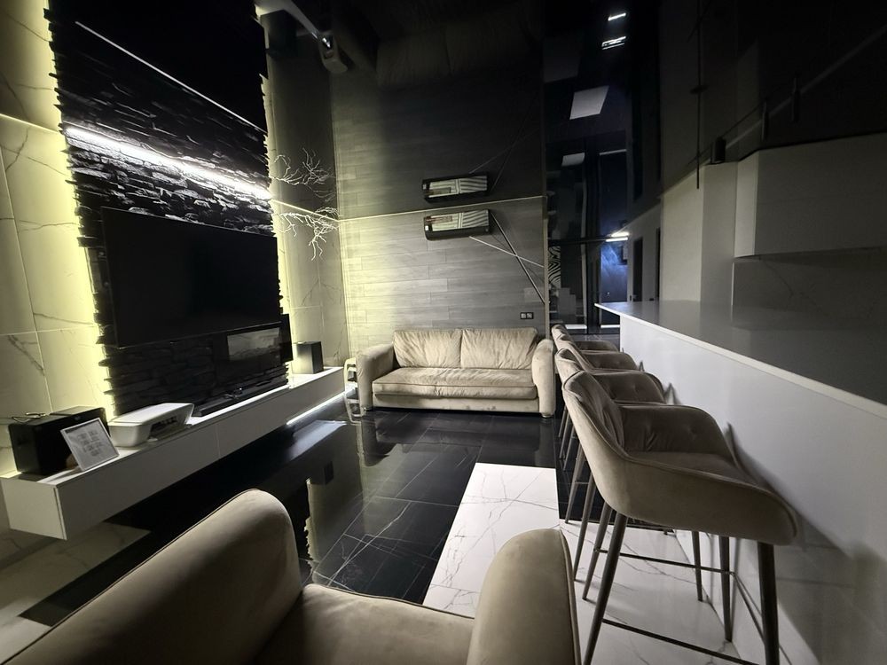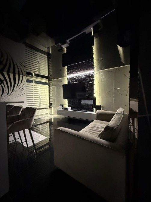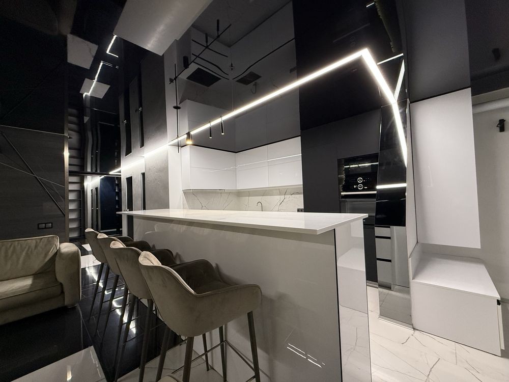 Оснащення: нові меблі та якісні матраци, вбудована кухня з необхідною технікою (холодильник, варильна поверхня, духовка, посудомийна машина, пральна машина, кондиціонер, телевізор), система LED-підсвітки, дизайнерський ремонт у сучасному стилі.