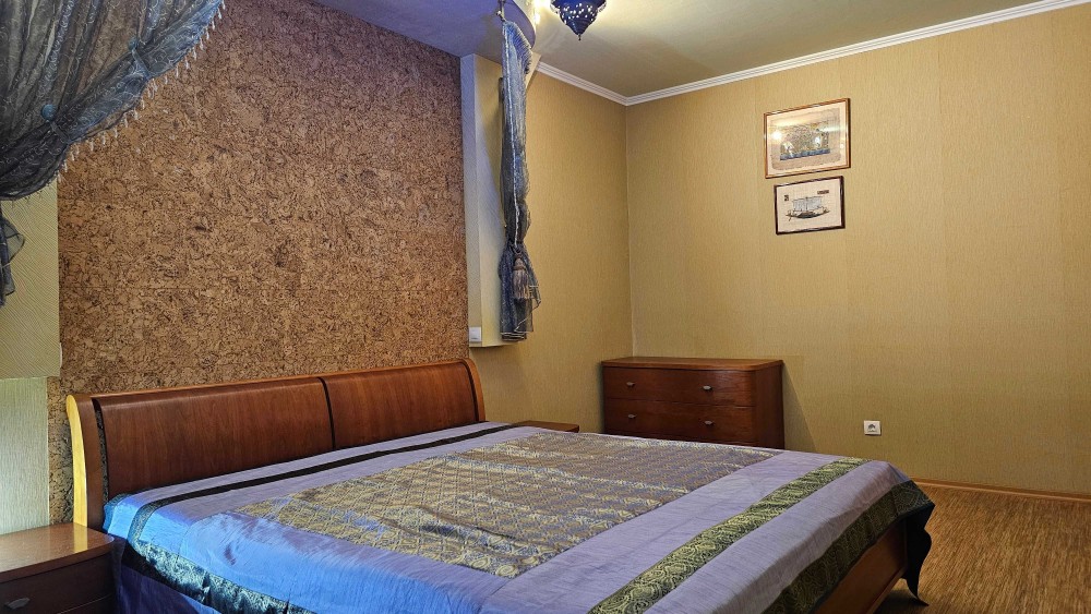 Площа квартири 85 кв.м., житлова 46,7 кв.м. Квартира має 2 спальні, об'єднану з вітальнею передпокій, кухню, засклену утеплену лоджію з виходом на кухню та у вітальню, роздільний санвузол з ванною та гардеробну. Квартира світла, акуратна і має все необхідне для комфортного життя: