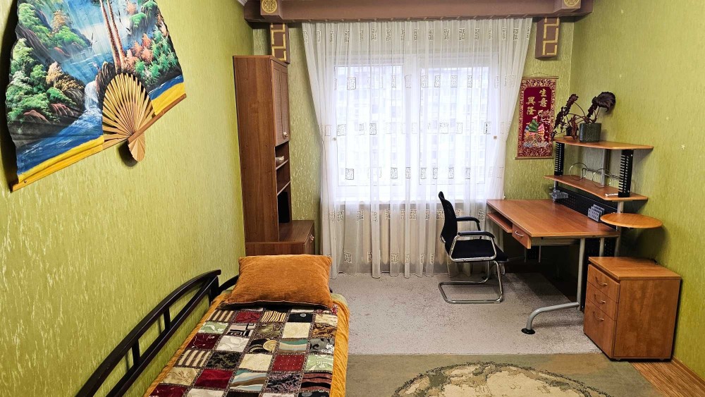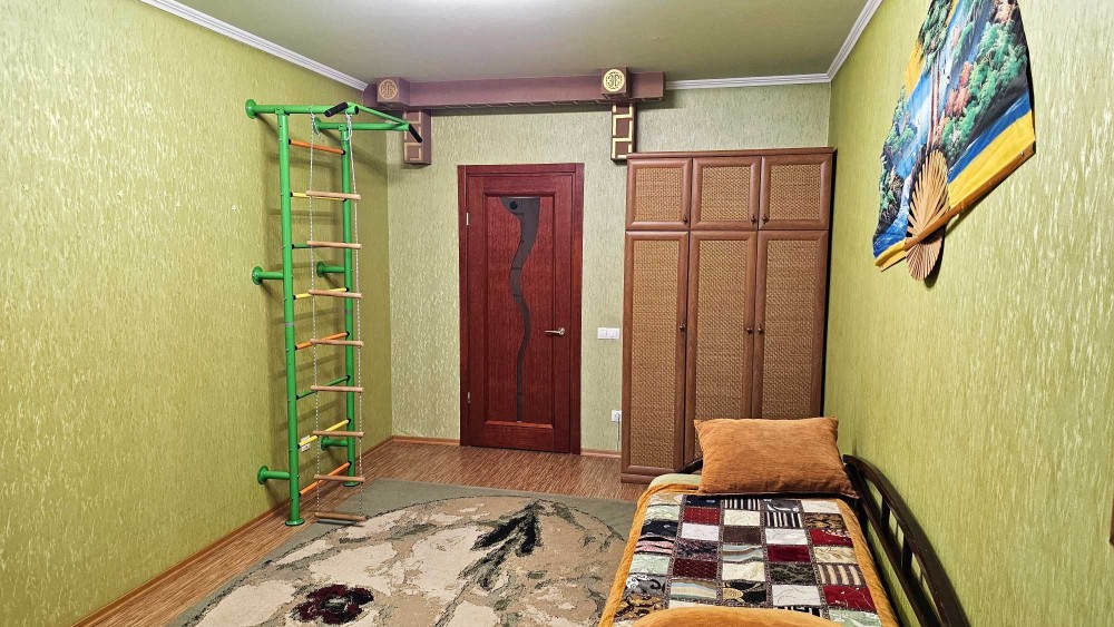 • Друга спальна (дитяча) - обладнана розкладним диваном на два спальних місця, платтяна та книжкова шафи, робоче місце, шведська стінка.