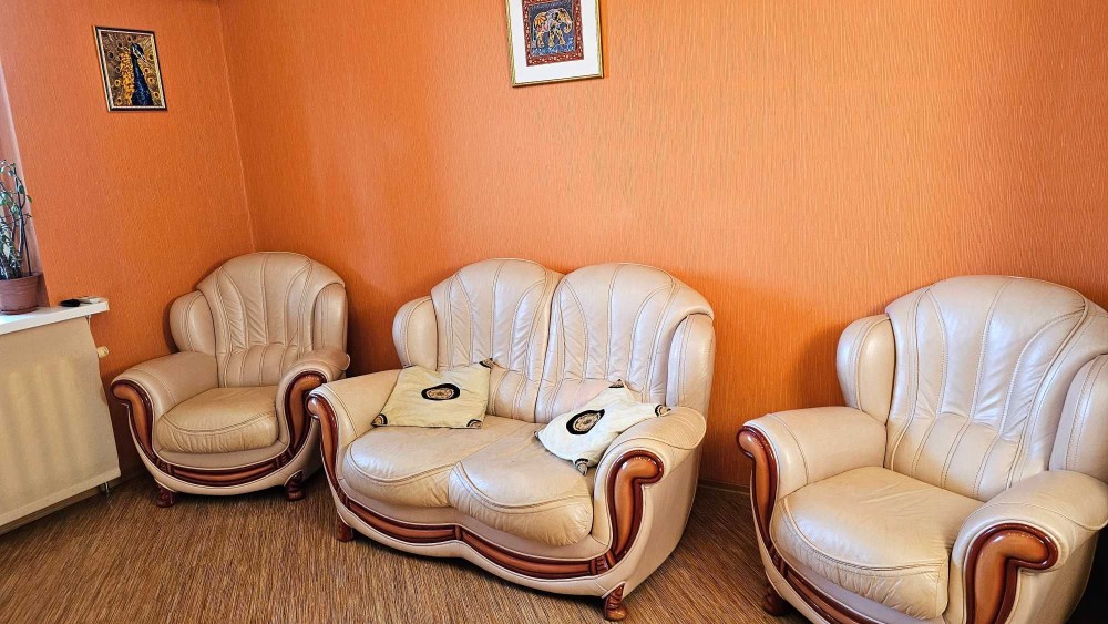 • Вітальня – телевізор, розкладний шкіряний диван та два крісла, вихід на лоджію.