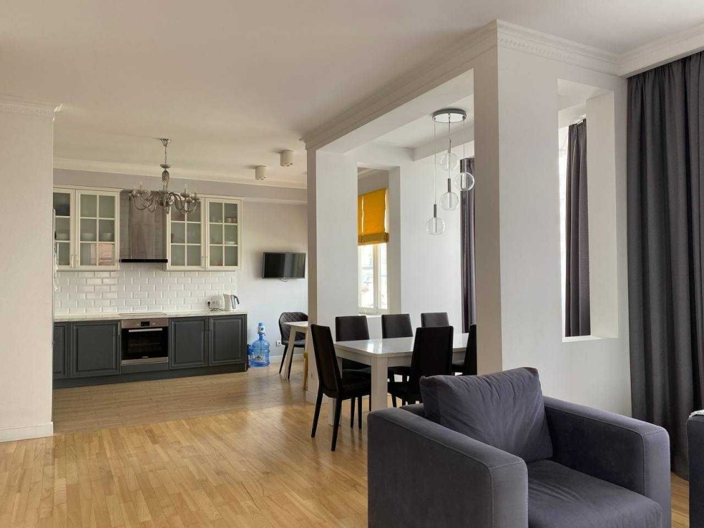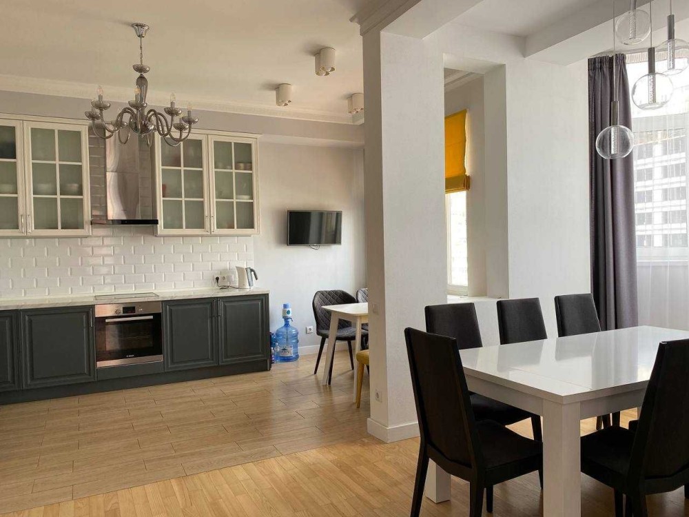 Загальна площа 140 м.кв, знаходиться на 16 поверху/17 поверхового будинку. Квартира укомплектована меблями та побутовою технікою для комфортного проживання.