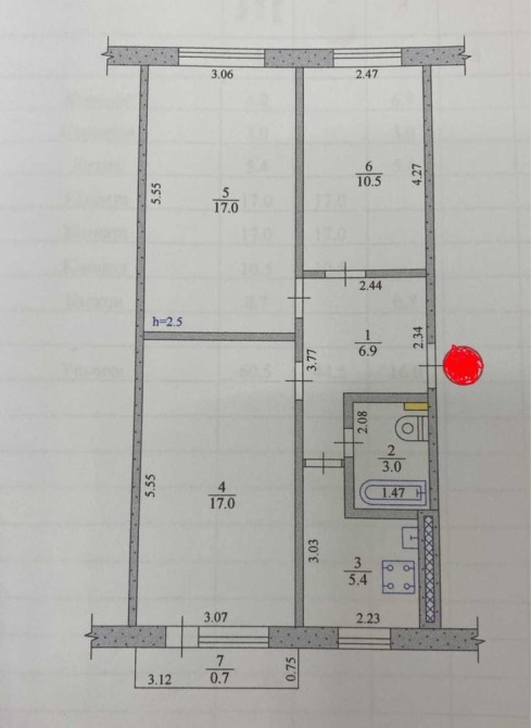 • Общая площадь 60 м2