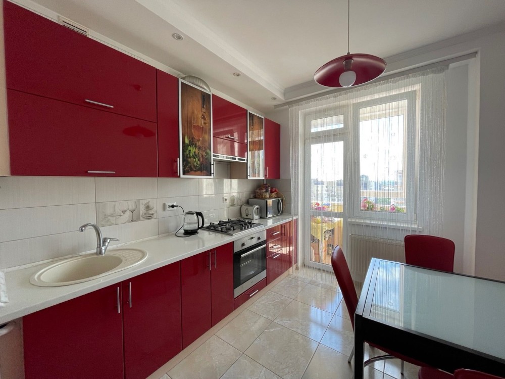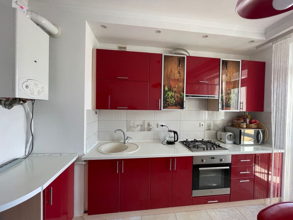 Всі необхідні меблі та побутова техніка: холодильник, пральна та посудомийна машина, мікрохвильова піч, електрочайник, газова поверхня, духова шафа, пилосос, телевізор.