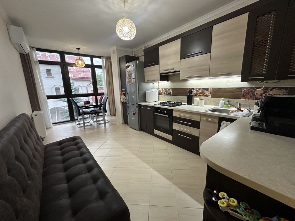 Квартира з індивідуальним опаленням (котел), великою кухнею-студією, посудомийною машиною, підігрівом підлоги, чотирма кондиціонерами, виходом під EcoFlow.