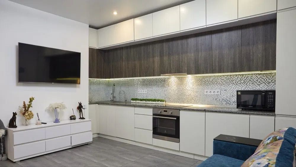 Простора кухня-студія — великий світлий зал, поєднаний з кухнею