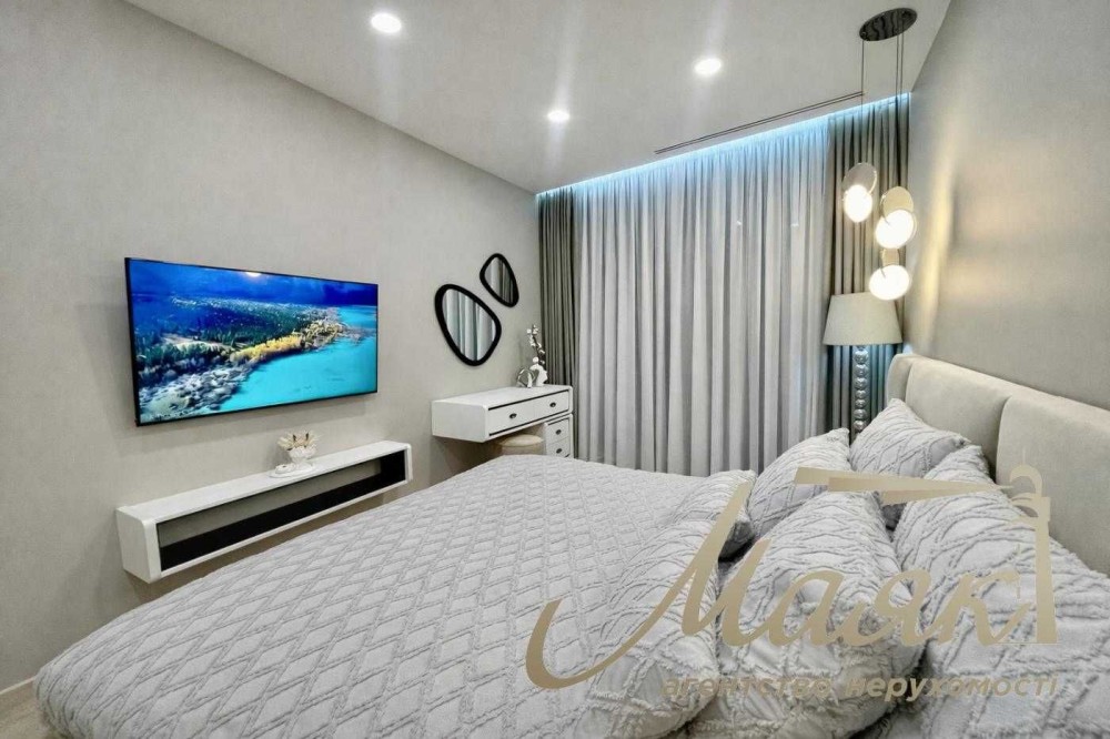 Квартира з дизайнерським ремонтом преміум-класу, виконаним з використанням якісних матеріалів. Панорамні вікна з видом на місто. По всій квартирі встановлено припливно-витяжну вентиляцію та систему кондиціювання. Стильне освітлення та декор створюють атмосферу затишку та гармонії.