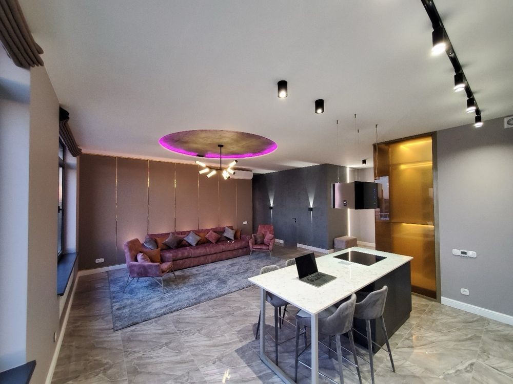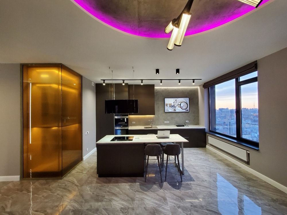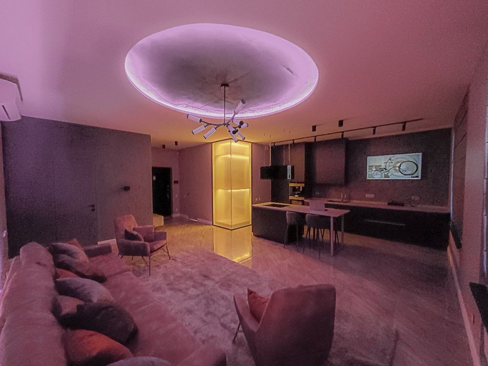 Квартира повністю автоматизована. Встановлена система «розумний дім» з керуванням освітленням, шторами, теплою підлогою, кондиціонерами, усією побутовою технікою, чайником та кавоваркою. Можна налаштовувати сценарії роботи.