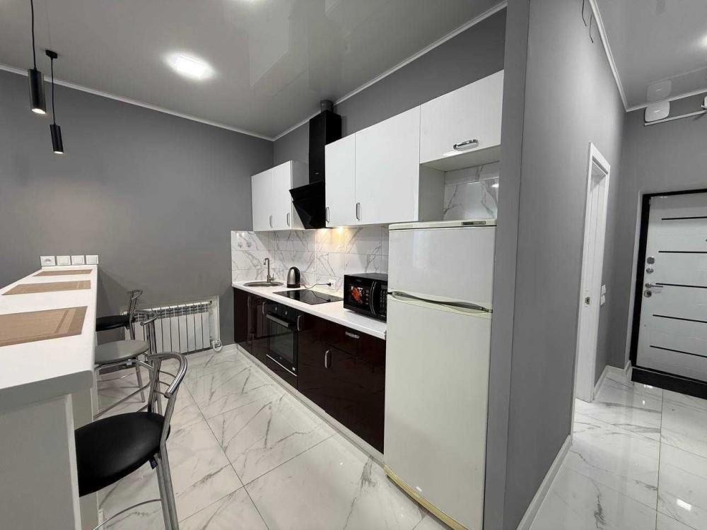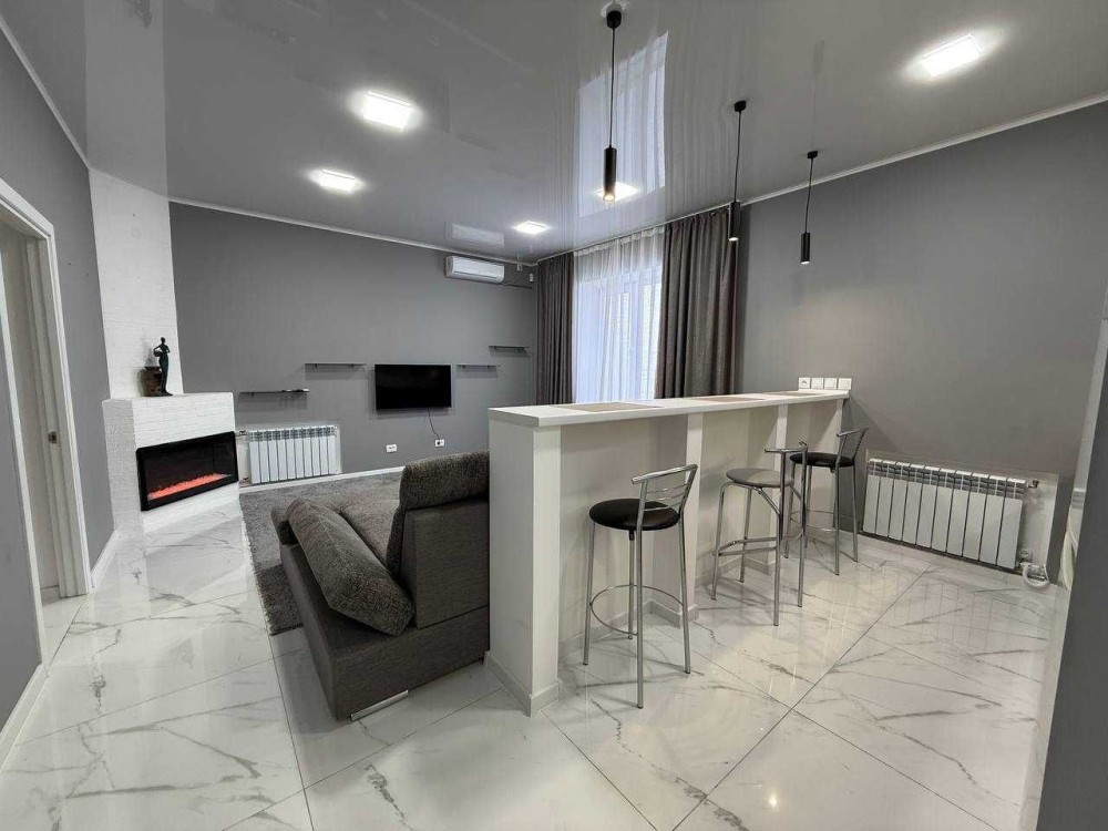 Квартира з гарним ремонтом, укомплектована всіма меблями та технікою: пральна машина, бойлер, холодильник, ел. плита, ел. духовка, ел. чайник, витяжка, мікрохвильова піч, телевізор, кондиціонер, камін, ел. обігрівачі додатково у кожній кімнаті. Балкона немає. Квартира на сигналізаціі, охороні та відеоспостереження у під'їзді.