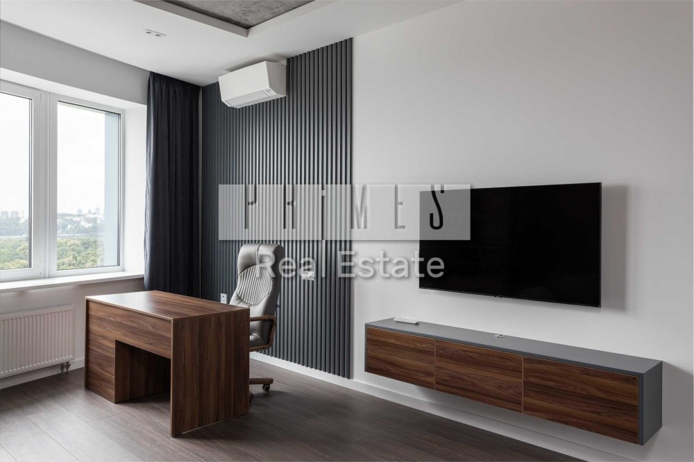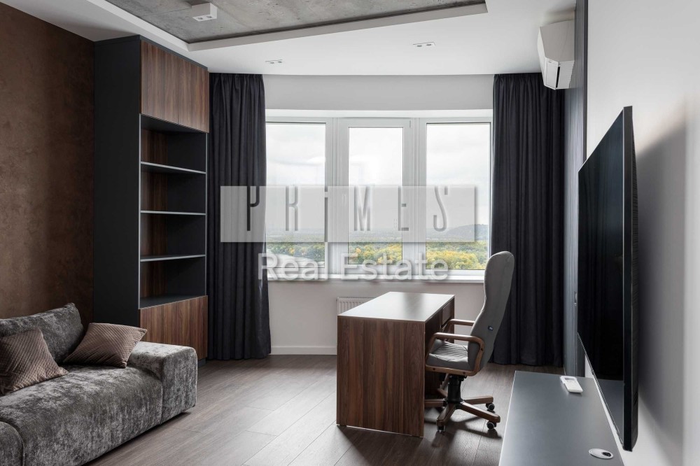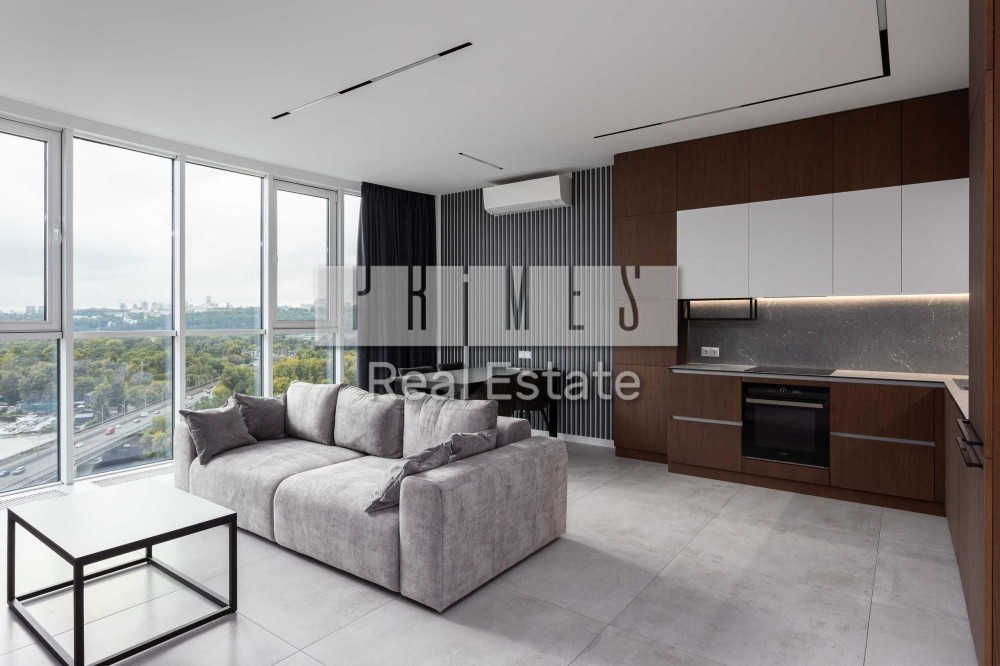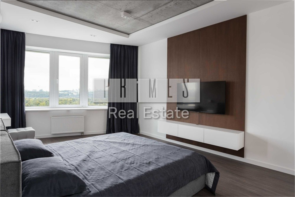 Квартира розташована на 18-му поверсі, відкривається панорамний краєвид на Дніпро, Печерську Лавру, Гідропарк, Венеціанський острів та центр Києва.
