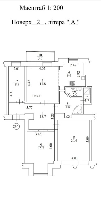 У самісінькому центрі міста по вул. О. Гончара чотирикімнатна квартира на другому поверсі п'ятиповерхівки архітектурного типу "Сталінка".
