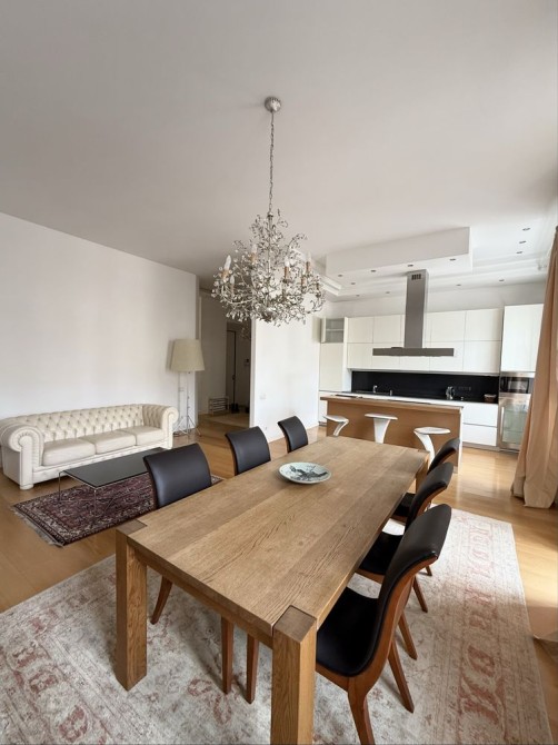 Повністю укомплектована меблями та технікою (двоспальне ліжко, кондиціонер, мікрохвильова піч, пральна машина, холодильник, винний холодильник, кухонний острів, ел.поверхня, дух.шафа, посудомийна машина, бойлер, шафа).