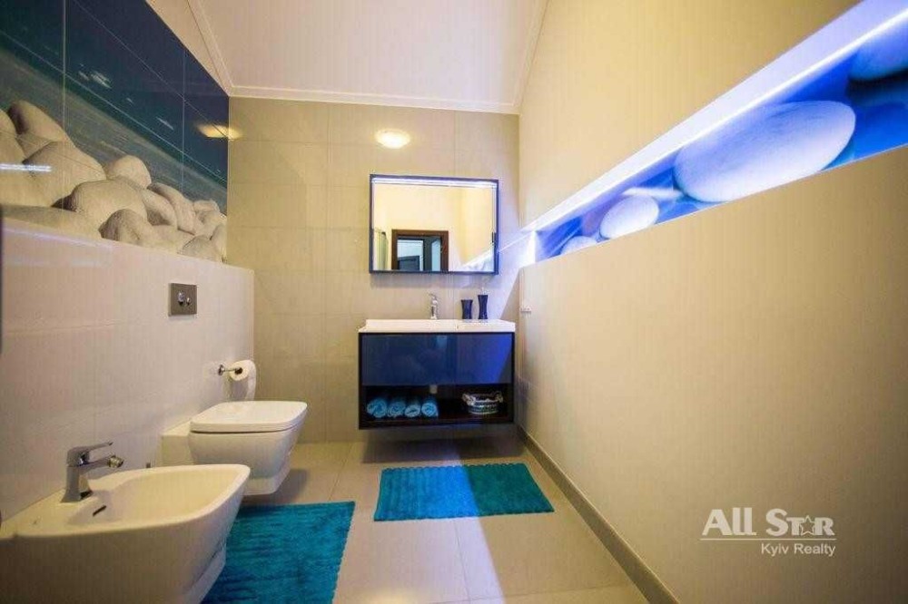 С/т «Арсеналець». Сучасний будинок 355м2. Дизайнерський ремонт, 4 спальні, 4 санвузла, 3 гардероби, гостьова зона 70 м2 з каміном. Повноцінний цокольний поверх, безпечна спальня (з окремим виходом на вулицю). Італійські кахлі, зональна тепла підлога, німецька сан. техніка Grohe, HansGrohe, Villeroy Boch. Спортзал, ігрова зона, сауна. Доглянутий двір, автоматичний полив, садівник-консьєрж, барбекю зона. Гараж на 2 авто + 2 паркомісця. Підключено генератор. Закрита територія, охорона.