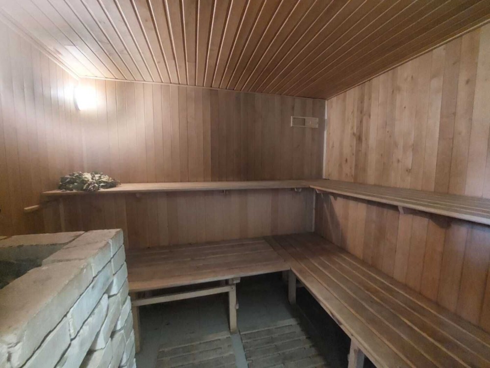 • Перший поверх: простора вітальня, камінна зала з домашнім кінотеатром, кухня, санвузол із душевою кабіною та дров’яна баня.