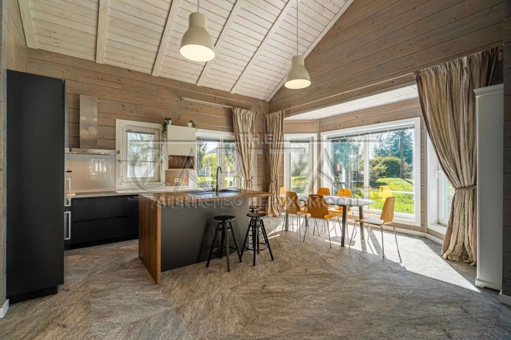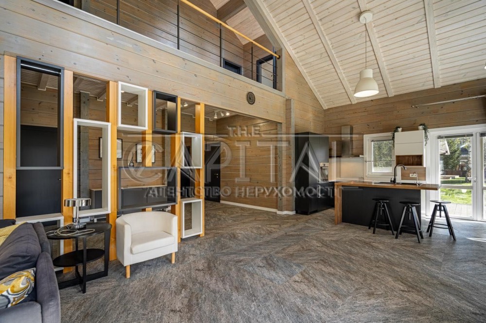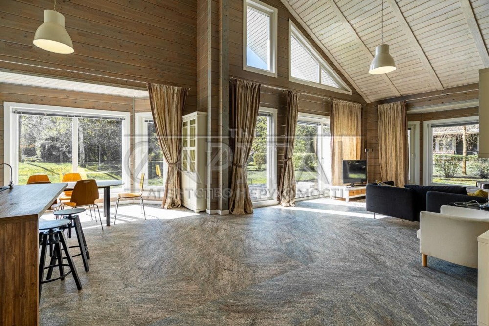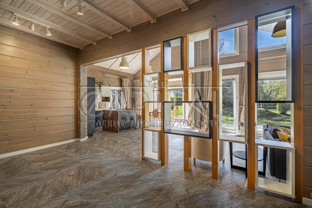 Будинок побудований із клеєного бруса за фінською технологією, що забезпечує екологічність, енергоефективність та комфортний мікроклімат.