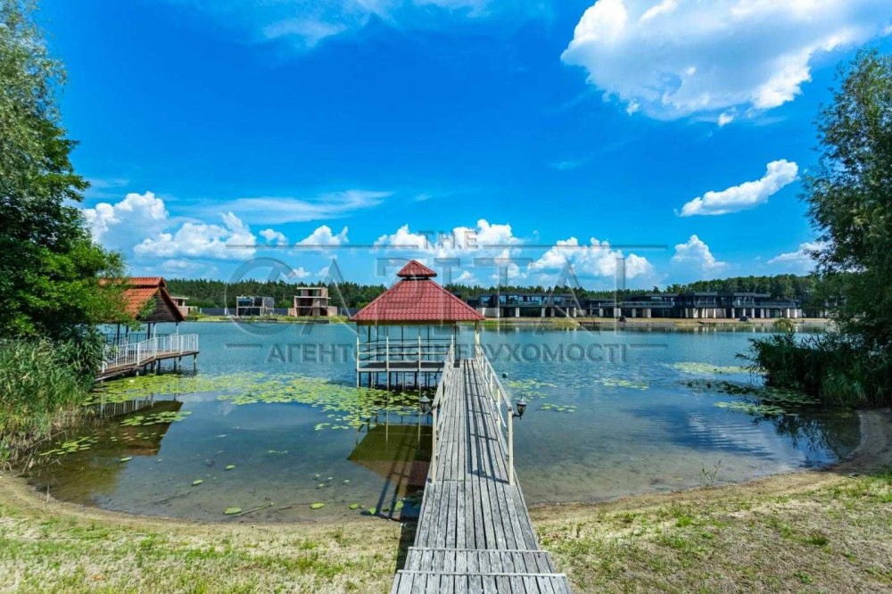 Ділянка 25 соток із ландшафтним дизайном та власним виходом до чистого озера. На березі облаштована альтанка — ідеальне місце для відпочинку.