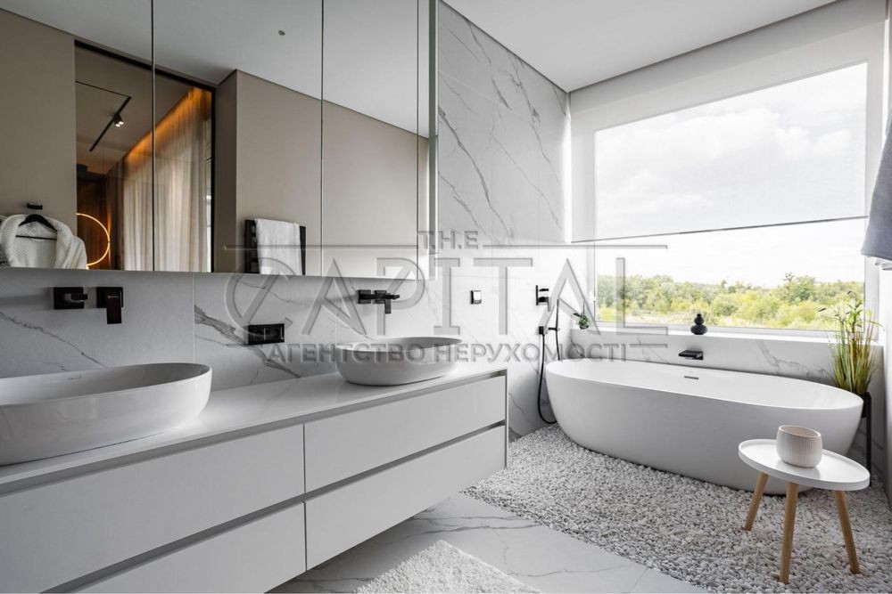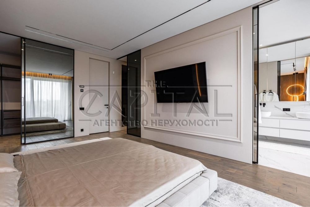 - MASTER ROOM: спальня (укомплектована ліжком Interio, ТВ 55”) має вихід на видовий балкон; чоловіча та жіноча вбиральні Volpato Stilli; ванна кімната з видовим вікном, ванною, двома умивальниками, душовою кабіною, відокремленим с/в.