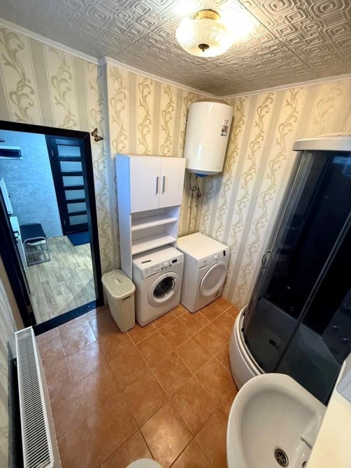 Код: 2249. (В летние месяцы цена немного повышается). Двухкомнатный дом в закрытом кооперативе на ул. Костанди. Евроремонт, общая площадь 100 кв. м., участок 4 сотки. Планировка: гостиная, спальня, большая кухня.В доме есть вся необходимая мебель и бытовая техника: холодильник, посудомоечная машина, варочная панель, утюг, электрочайник, плита, стиральная машина, пылесос, духовой шкаф, микроволновая печь, скоростной Wi-Fi интернет, телевизор, индивидуальное газовое отопление. Автономность при блэкауте: работает интернет, подключено резервное питание, работает отопление, работает водопоснабжение. Очень тихое место и приятные соседи, к морю пешком 10 минут. Своя территория с мангалом, беседкой, и два гостевых дома. В основном доме везде установлены теплые полы. Возможно проживание с животными. Аренда от 6-ти месяцев и более. Стоимость может варьироваться в зависимости от срока аренды. Перед просмотром уточните наличие и важные для вас детали по VIBER, WHATSAPP или TELEGRAM, указав «КОД» из объявления. КОМИССИЯ ЗА УСЛУГИ РИЭЛТОРА - 50% от месячной аренды (разовая оплата при оформлении договора). Пояснения: Сдается с 1 марта. В летние месяцы цена немного повышается. Костанди — это киевский район