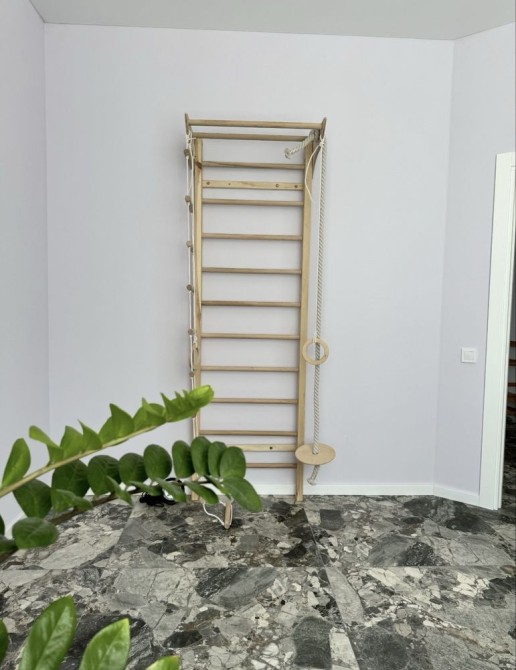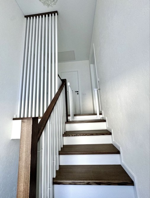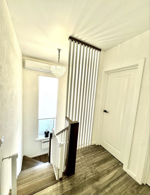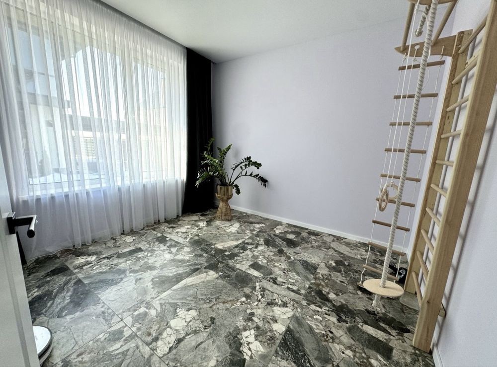 На першому поверсі ванна кімната з душем та прально/сушильною машиною, кімната для спорту з шведською стінкою, кухня-студія з виходом на терасу, столешня з натурального каменю, камін, технічна кімната . Другий поверх має ванну кімнату, три окремі спальні та в одній з них гардероб.
