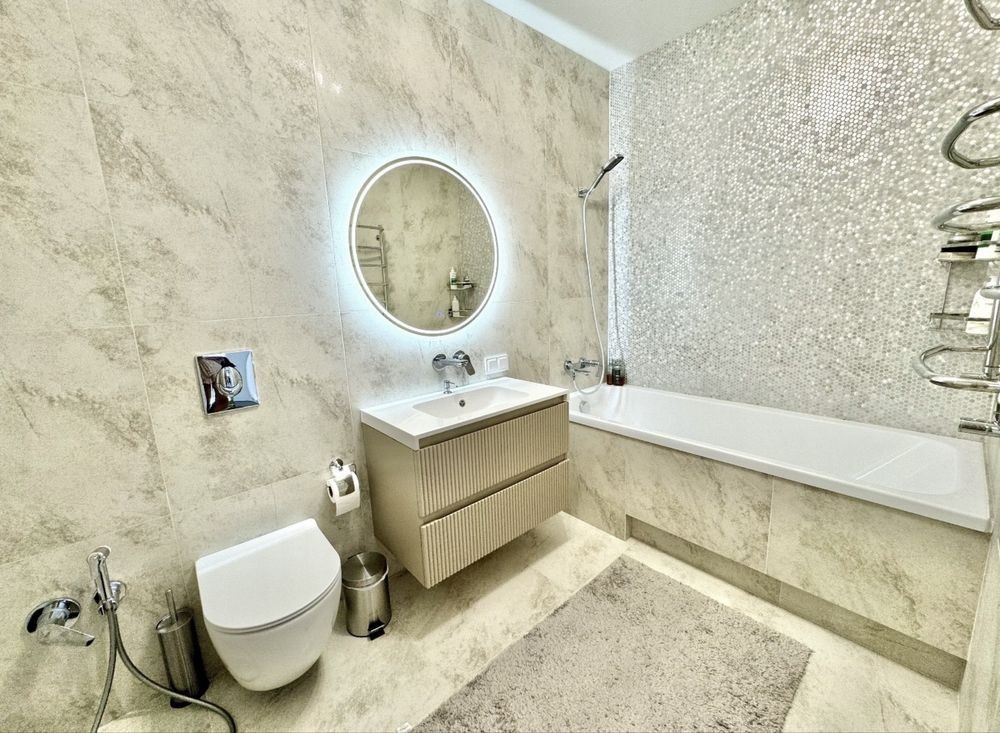Новий ремонт, укомплектований вбудованими меблями та технікою.