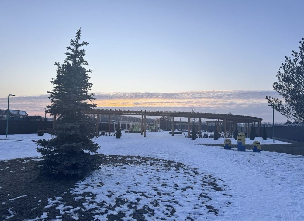 Навіс на два авто , засаджено ділянку туями, гортензіями, полуницею та хризантемами з лавандою.