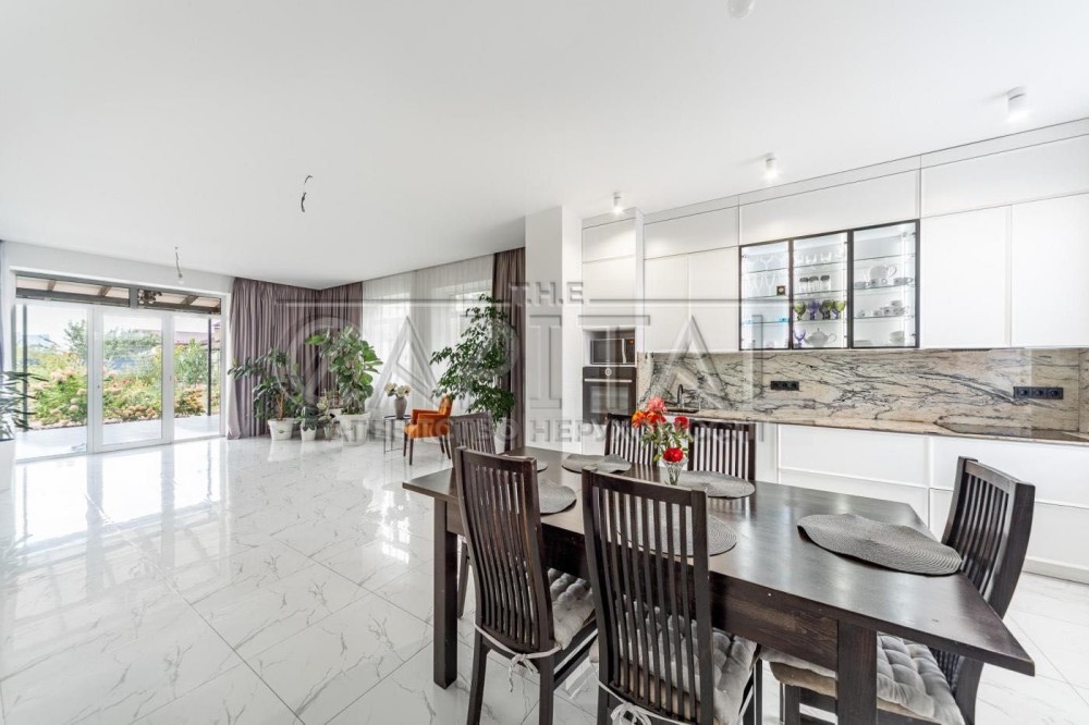 - Кухня та їдальня з видом на сад у внутрішній двір